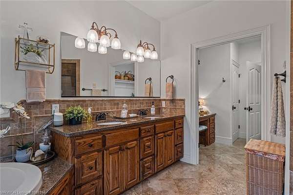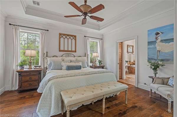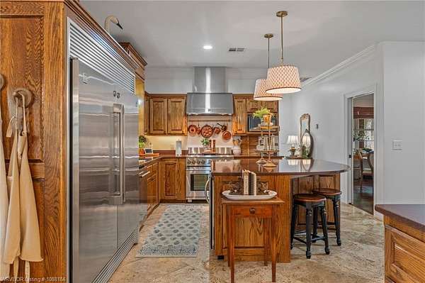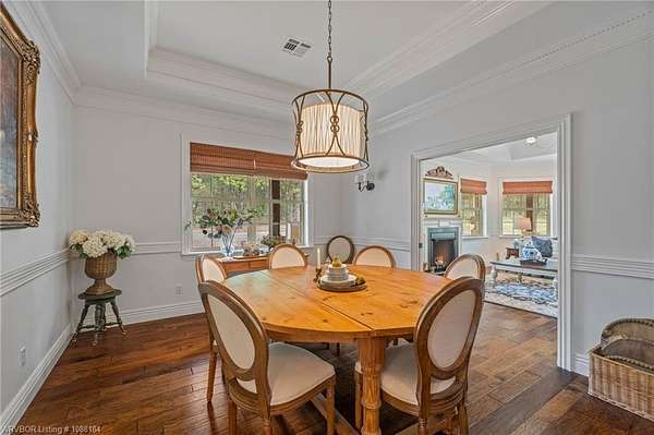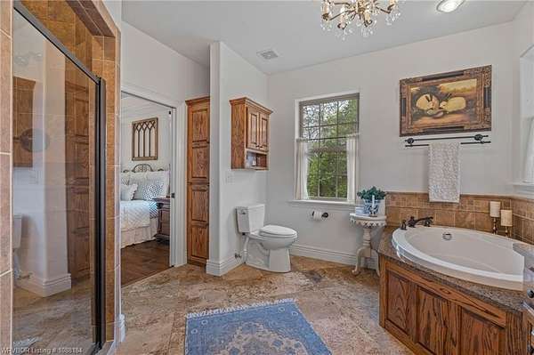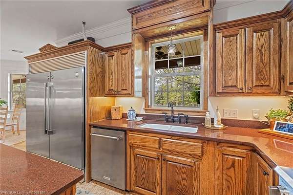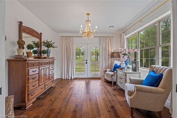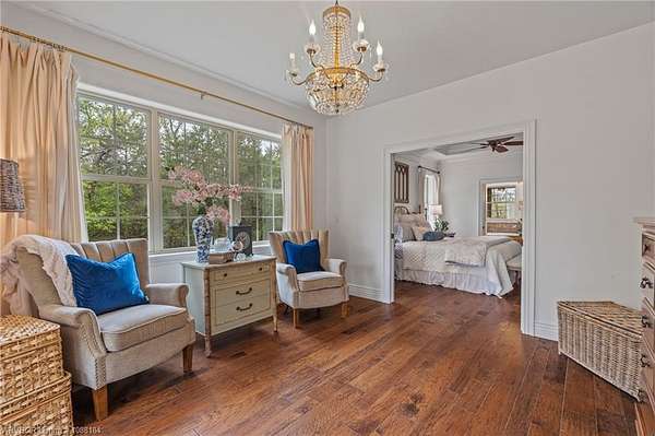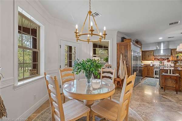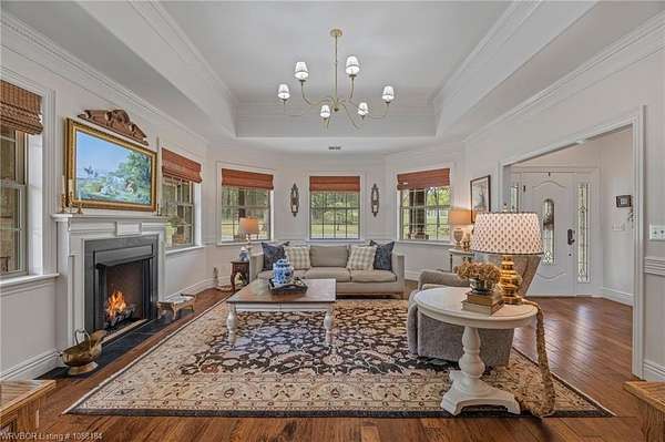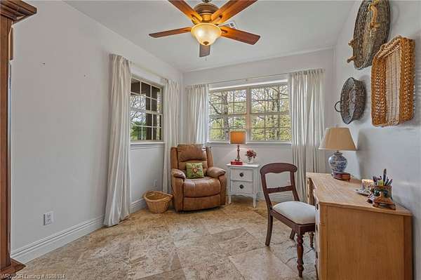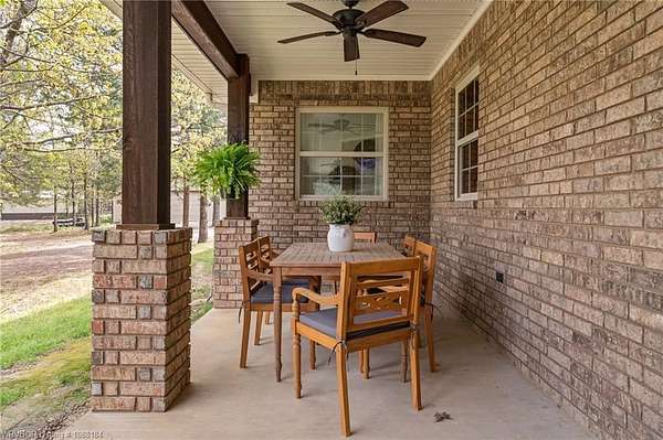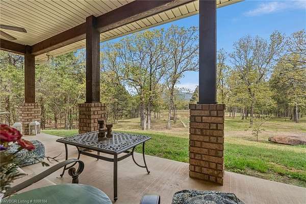 Experience refined country living on 12 private acres with an additional 8 acres available separately, just minutes from Poteau. This exceptional 3 bedroom, 2.5 bath home with office or hobby room blends high-end design with everyday comfort, set behind an electric gated entry and cross-fenced for animals. Inside, the thoughtfully designed layout features a spacious living room with gas log fireplace flowing into the formal dining area. The eat-in kitchen is a true showpiece with a dual fuel range with vent hood, column refrigerator/freezer, built-in ice maker, large island, pull-out drawers, and walk-in pantry. The breakfast room features a built-in buffet with glass-front upper cabinets. Laundry connects to both the kitchen and primary suite. Designer lighting, hardwood and travertine flooring throughout. The primary suite offers a private retreat with sitting area, French doors to the porch, and a spa-like bath with jetted tub, dual-head shower, and heated floors. The walk-in closet is off the bedroom, separate from the bath. A safe room off the primary suite provides additional storage and peace of mind. Step outside to covered front and back porches, stone fire pit, and a scenic walkway leading to a private stocked pond. Frequent wildlife enhances the peaceful setting. The property includes a 37x60 shop with new electric panel, roll-up and walk-through doors, and 200 amp service. A second 25x40 shop includes 100 amp service, a 2-ton mini split, and durable 30-year roof coating-ideal for guest house or mother-in-law suite. A 30x30 equipment shed with rock pad offers additional storage. Attached oversized garage included. Near two golf courses and less than 30 minutes to Lake Wister, Cedar Lake, and Ouachita National Forest for fishing, hunting, hiking, and 4-wheeling. Approximately 35 minutes to Fort Smith. Enjoy evenings by the pond, mornings on the porch, and the space and privacy this property offers-country living with convenience.