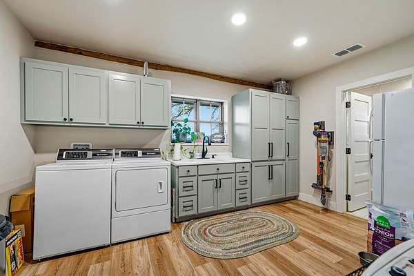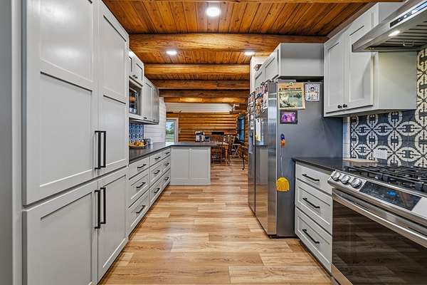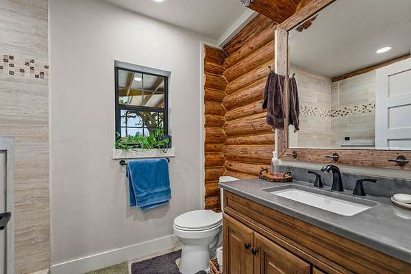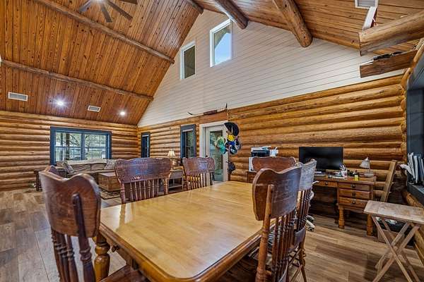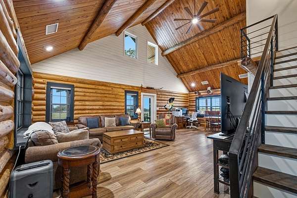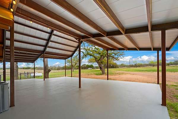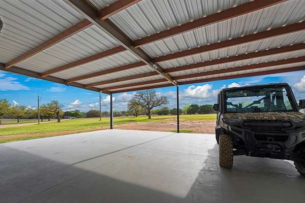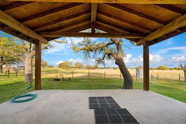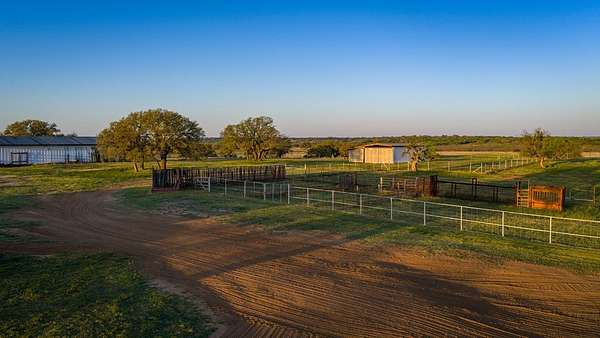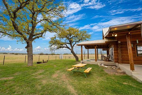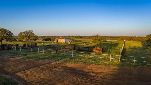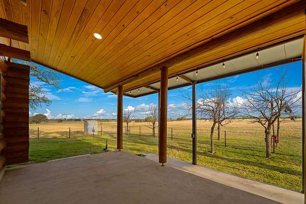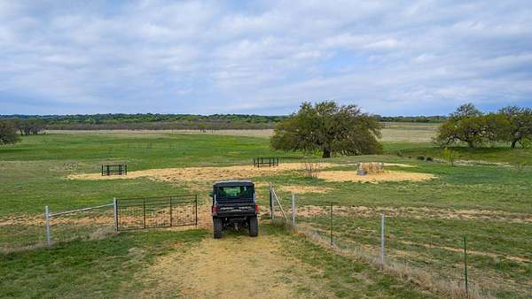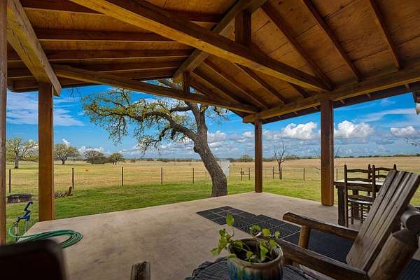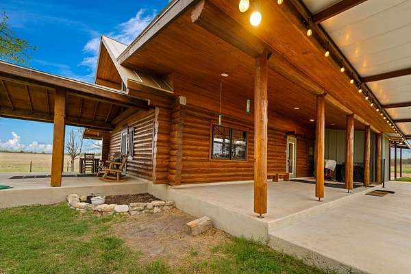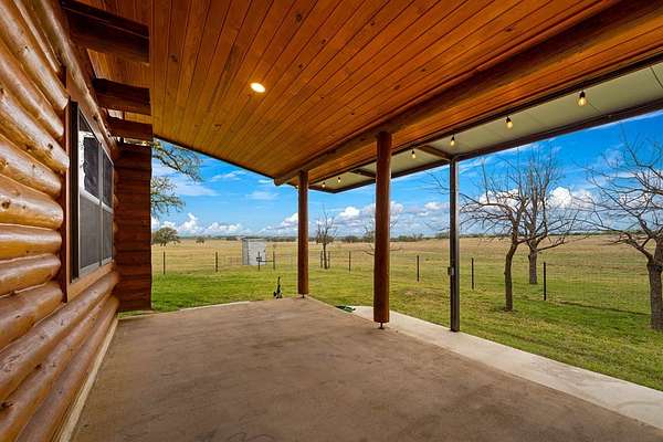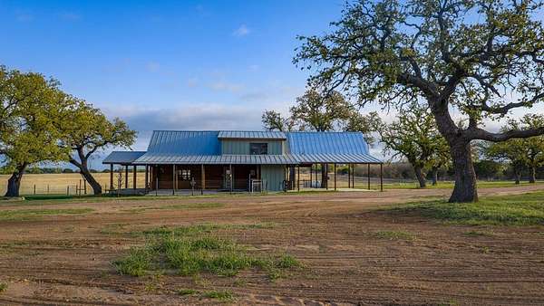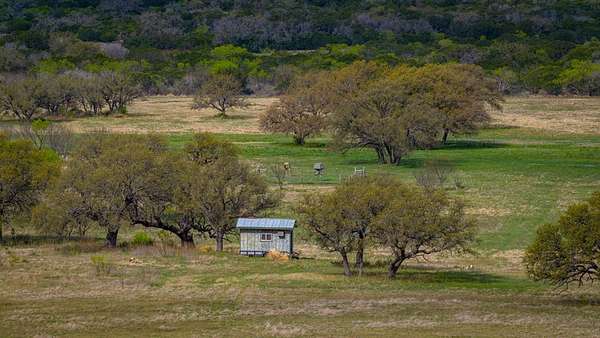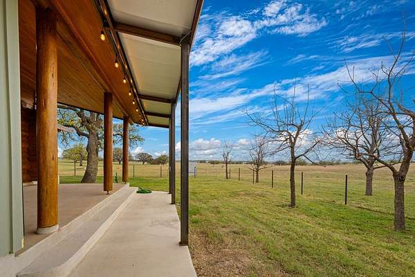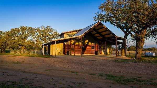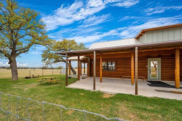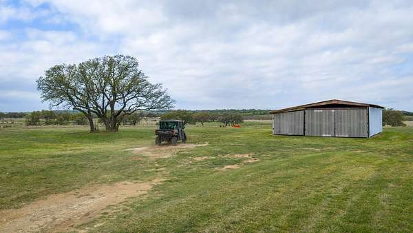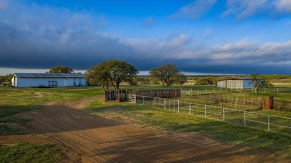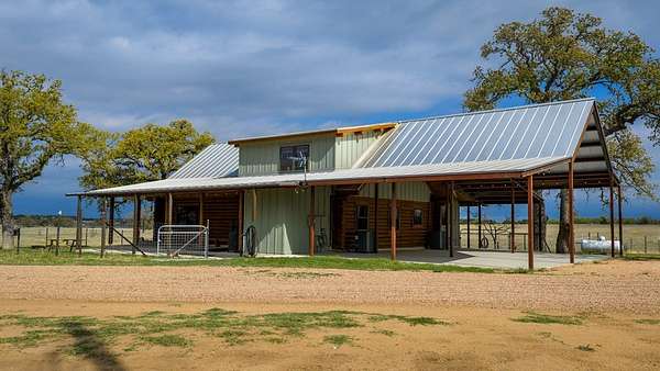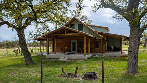 The improvements on this 247-acre ranch were built with intention, blending functionality with the kind of craftsmanship that stands the test of time. Constructed in 2021, the custom log home reflects quality materials and thoughtful design, while the property as a whole has been meticulously cared for under the current ownership—something that is evident from the condition of the improvements to the management of the land. The 2,220 square foot home immediately sets itself apart with vaulted ceilings, exposed log beams, and tongue-and-groove woodwork that carries throughout. The main living area offers an open layout with natural light and views across the ranch, creating a space that feels both comfortable and connected to the land. The kitchen has been thoughtfully designed with custom cabinetry, ample counter space, and an L-shaped layout with bar seating—well-suited for both everyday use and gathering. Stainless appliances, a vent hood, and a detailed tile backsplash add to the overall finish while maintaining the home's warm, ranch-style character. The primary suite is positioned for privacy and features a spacious layout, large walk-in closet, and an updated bathroom complete with double vanities, a walk-in tiled shower, and a separate soaking tub. Additional bedrooms and bathrooms are well-appointed and consistent with the quality seen throughout the home. A standout feature for daily ranch life is the oversized laundry and mudroom, offering built-in cabinetry, workspace, and a utility sink. Just off the mudroom is a full bathroom, providing convenient access after working cattle, spending time in the yard, or coming in from the barn—an intentional detail that adds to the functionality of the home. Outdoor living is just as intentional. The three-sided wraparound porch, finished with wood-lined ceilings, provides multiple covered seating areas and a natural extension of the home—ideal for taking in the surrounding landscape and keeping an eye on livestock and pasture conditions. The ranch infrastructure has been thoughtfully laid out to support both livestock and long-term land stewardship. A 60x40 metal barn anchors the improvements, complete with four mechanical roll-up doors, along with insulation, electricity, and water already in place. An attached covered awning extends the functionality of the barn, offering additional space for equipment storage or covered parking. Two additional equipment sheds provide further support for day-to-day operations. Working pens are conveniently located near the barn, allowing for efficient livestock handling, and the property is cross-fenced into multiple pastures to support rotational grazing and improved land management practices. The layout of the ranch allows for both ease of use and flexibility, whether running cattle or managing wildlife. Water is a strong attribute of the property, with a reliable house well supported by two irrigation wells positioned on both the east and west sides of the ranch. Multiple spreader dams traverse the property, enhancing water retention, slowing runoff, and contributing to the overall health and productivity of the native grasses. The land itself offers gently rolling topography, a strong presence of mature oak trees, and a setting that supports both agricultural use and recreation. The property is high fenced on three sides, providing additional versatility for wildlife management while maintaining accessibility. This is a well-rounded Hill Country ranch where the improvements, water, and land have all been carefully considered and maintained—creating a property that is ready to be used and appreciated from day one.