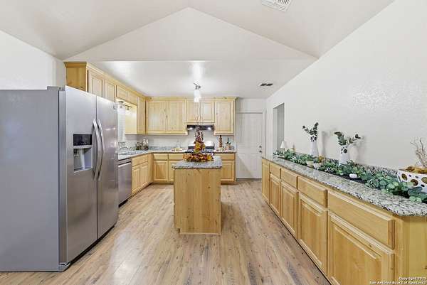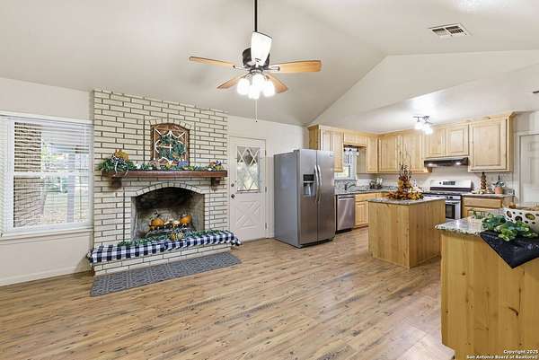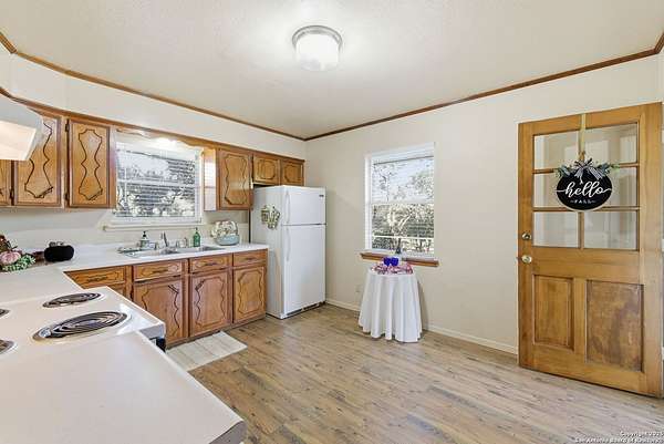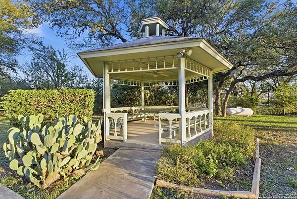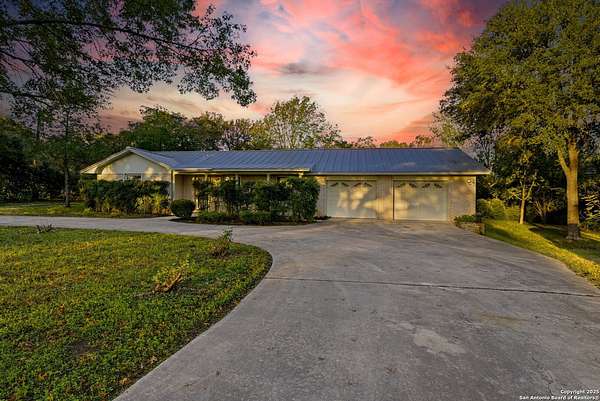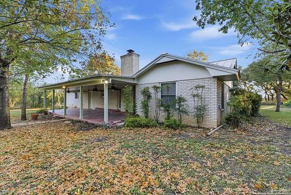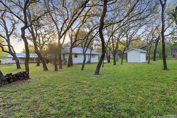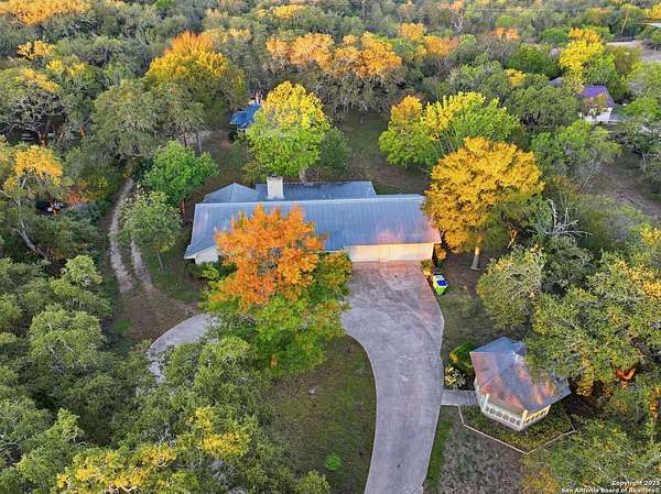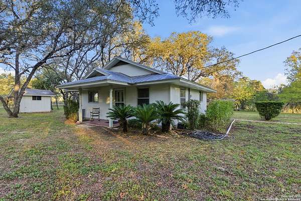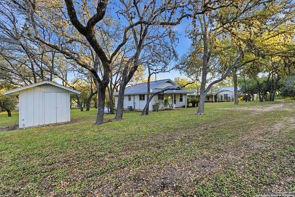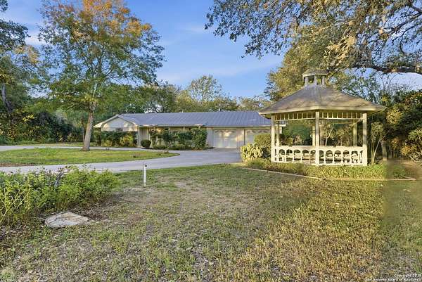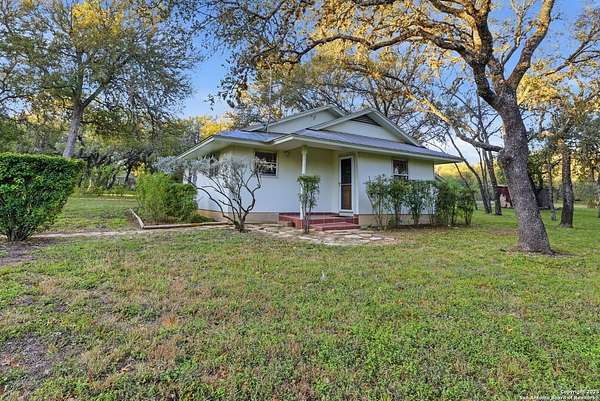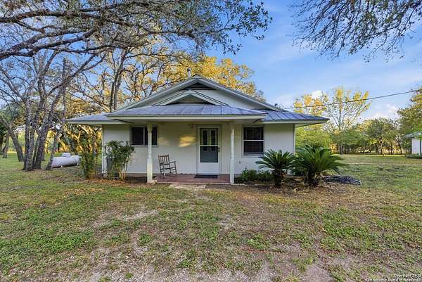 2 Beautiful Tree Filled Acres & 2 Beautiful Homes! Lots of options to explore with this well cared for place! Have an income producing guest home / VRBO or place for family / friends to live. As you arrive through the gates you will be greeted with oak trees, a gazebo, and circular drive. The main home features an updated island kitchen with gorgeous custom cabinets & granite countertops. The handsome brick fireplace is the focal point of the dining room and open to the kitchen. Oversized garage with a full bath! HUGE covered patio area for relaxing and enjoying the views of the backyard. The well appointed guest home has 2 bedrooms / 1 bath / 1 living area / eat-in kitchen. Fenced in garden area for all your veggies! There's a 500 foot well on the Edwards Aquifer for excellent water and the main home has a water softener system included. Tankless water heater, metal roofs, & John Deere lawn tractor included! County Road 381 is almost completed for easy access. Come see this amazing place TODAY!