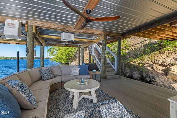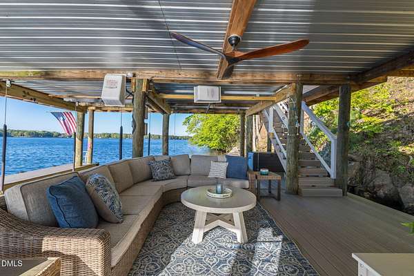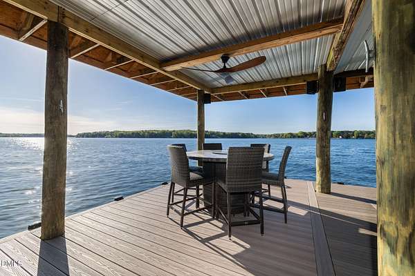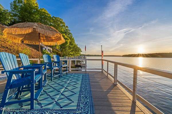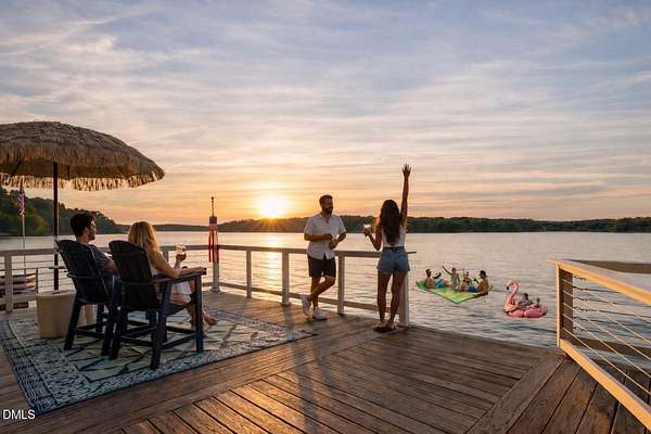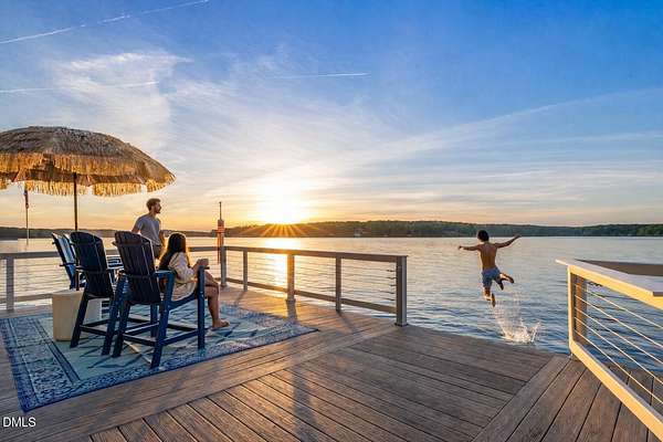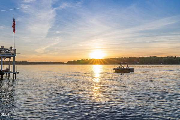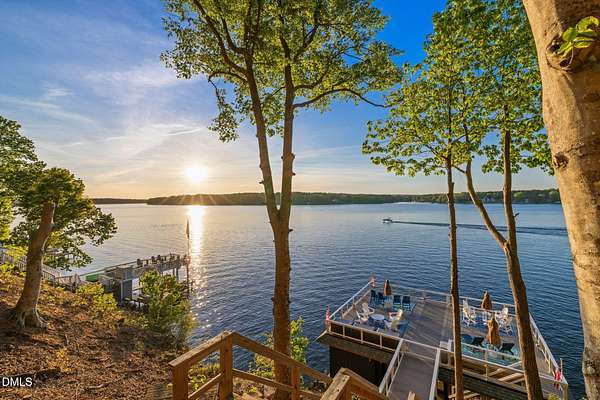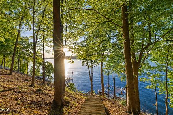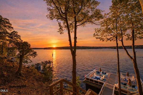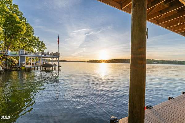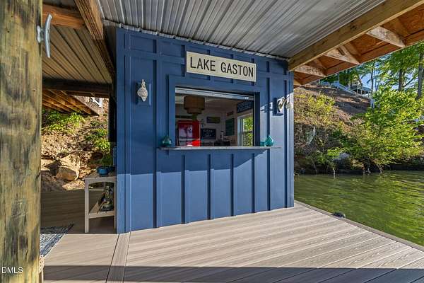 PREMIER MAIN LAKE LOT IN HARBOR LANDING WITH EXCEPTIONAL SUNSET VIEWS. If you are looking for a property where the best part of lake living is already complete, this is it. Set on an elevated homesite in the gated community of Harbor Landing, this lot captures long, wide main lake views and some of the most sought-after sunsets on Lake Gaston. The setting offers both presence and privacy, with mature hardwoods framing the homesite. The highlight is the NEWLY REBUILT DOUBLE BOATHOUSE, thoughtfully designed for both function and entertaining. Features include composite decking, a full upper-level sundeck with cable railings, shaded sitting area downstairs, and enclosed storage room finished as a dockside kitchenette and bar. Complete with roll-up service window and refrigerator, this space is ready to enjoy from day one. At the water, you will find approximately 20 feet of depth and two new boat lifts (10,000 lb and 6,000 lb), making it ideal for serious lake use. The property is also ready for your future home, with a 4-bedroom septic permit and well permit already on file. Harbor Landing offers a gated entrance, community boat ramp, day docks, and a dedicated boat trailer storage area. Conveniently located by water to Shady Shack, WatersView, and One Eyed Jacks. A rare opportunity to secure a premier main lake setting with views, water depth, and a finished outdoor living space already in place.