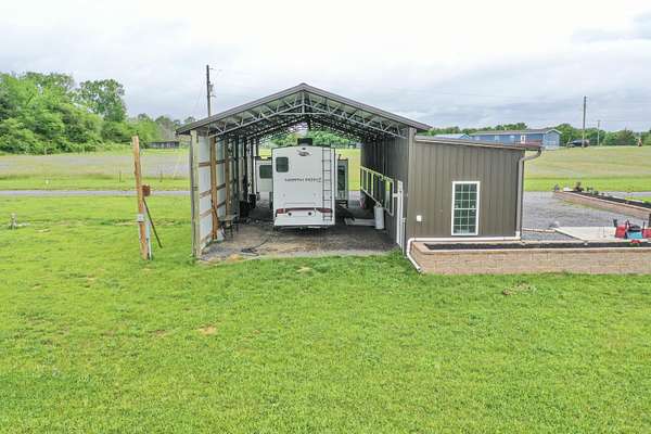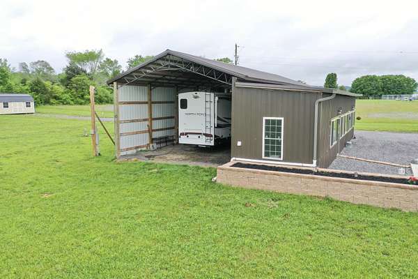 Come get your slice of country paradise! This is a beautiful and unique property! It features nearly 2 level acres of gorgeous land with a large finished open space that is heated and cooled along with an unfinished barndominium. Seller spent a small fortune to run electricity, water, and a complete the septic system with pump so far from the road only to be summoned to relocate to another state. He previously lived on the property in his RV planning to finish the barndo. The finished space is 50 X 15 featuring over $30K in windows alone. There is also a 10 X 15 laundry room. The barndominium if a 60 X 25 metal shell just waiting to be finished! Additionally, there is a brand new large storage building at the rear of the property. Come bring your RV, enjoy the peace and beauty of this beautiful land, and finish out the remaining space!