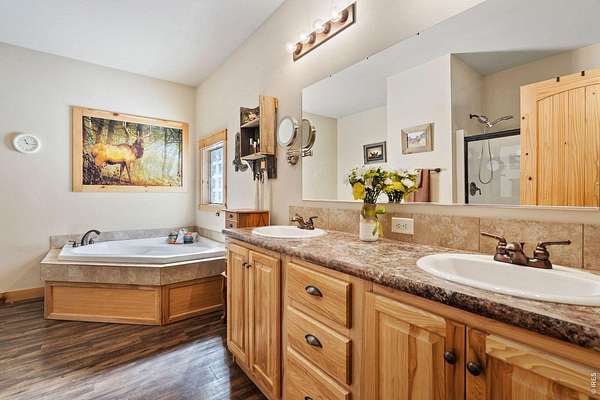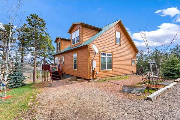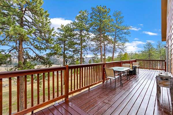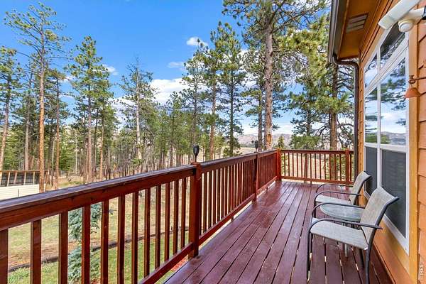Escape to your own slice of paradise with this private mountain retreat in Bellvue, where nature's beauty surrounds you and abundant wildlife roams freely across more than 7 acres of pristine land. Surrounded by breathtaking views and towering pine trees, this two-story home offers the opportunity to experience Colorado living away from the hustle and bustle of city life. Every corner has been thoughtfully designed to maximize comfort and functionality, featuring an inviting open floor plan and luxury vinyl plank flooring throughout. The spacious kitchen boasts plenty of storage and counter space, making meal prep a breeze. The primary suite offers a peaceful oasis with a walk-in closet and an ensuite 5-piece bathroom complete with a soaking tub and walk-in shower. Upstairs, a private haven awaits, with a generously-sized bedroom and a cozy family area with picture windows that frame the stunning mountain vistas. The walkout basement with polished concrete floors presents endless possibilities for customization. You will find an additional bedroom and bathroom, a bonus room that can be used as a workshop or office, and a recreational space that can be transformed into an additional living area tailored to your unique needs. Step outside and breathe in the fresh mountain air from the comfort of your wraparound deck, with expansive views stretching as far as the eye can see. Great well. If you've ever dreamed of raising horses or cattle, this property offers the perfect opportunity. With a loafing shed, a 10' x 12' tack shed, an area for an arena, and fencing already in place, you'll have everything you need to enjoy the ranching lifestyle. Plus, with a 30' X 40' metal garage featuring a 12' overhead door, you'll have plenty of space to store all your vehicles, gear, and equipment. Outdoor enthusiasts will love this location year-round! Cross country ski or snowshoe right out of your front gate in the winter and explore the area on foot or horseback in the summer.