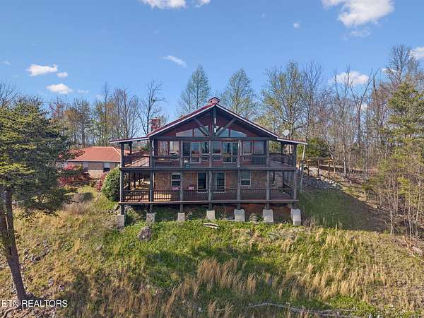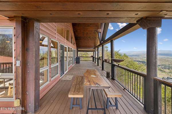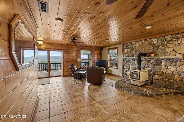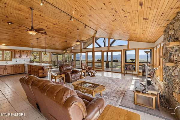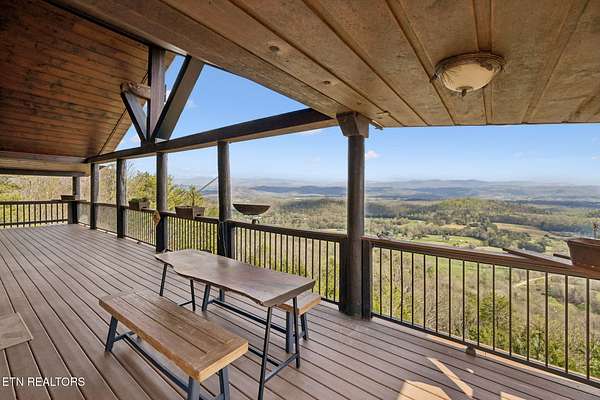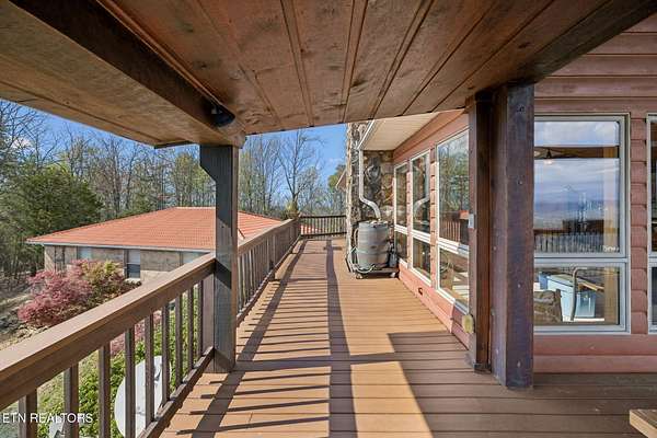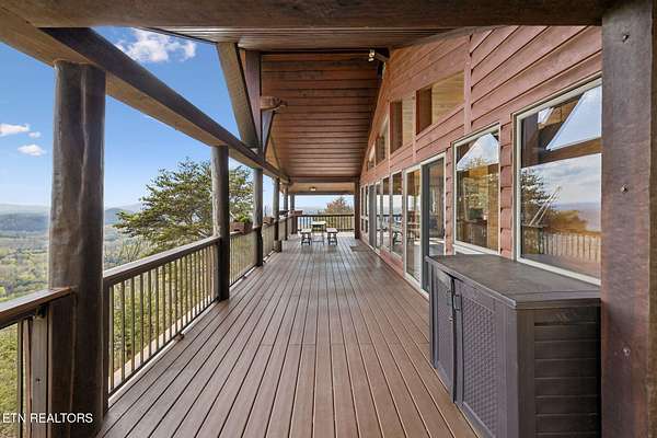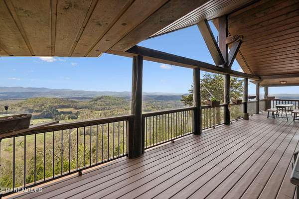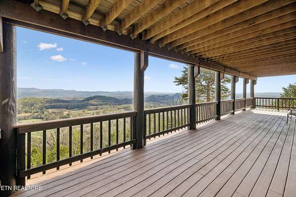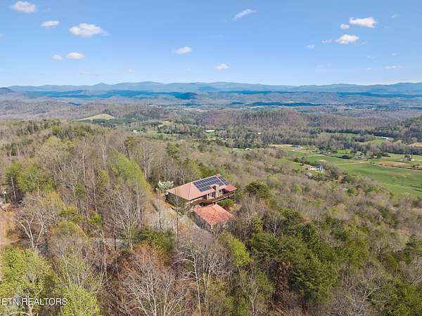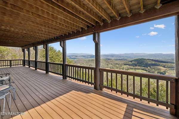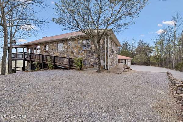 Enjoy breathtaking 180 degree long-range mountain and valley views stretching all the way to North Carolina from this beautifully remodeled 3-bedroom, 2-bath stone and log-siding home (septic is approved for two bedrooms). Perched at the top of one of the highest points in the gated community of Laurel Lakes, this property offers exceptional privacy and stunning scenery. The open-concept kitchen and family room are perfect for everyday living and for entertaining. Step out onto the expansive deck and take in the views, or enjoy additional living space in the finished walk-out basement with a cozy wood stove and views from another amazing deck on the lower level. Rain barrels convey to water your plants on the deck, and the detached three car garage provides ample room for vehicles and outdoor toys. Equipped with solar panels for alternate energy efficiency, this home blends comfort with sustainability. Residents enjoy private community amenities including a private spring-fed lake, private sandy beach, boat ramp, picnic pavilion, and access to walking trails, fishing, kayaking, paddleboarding, and swimming - all just minutes away from the Cherokee National Forest, and in driving distance to Lookout Mountain, Dollywood, Cades Cove, Bald River Falls, etc. This is the perfect location for those seeking adventures, tranquility, and the best of East Tennessee living. Buyer and buyer's agent to verify all facts.