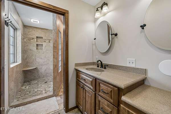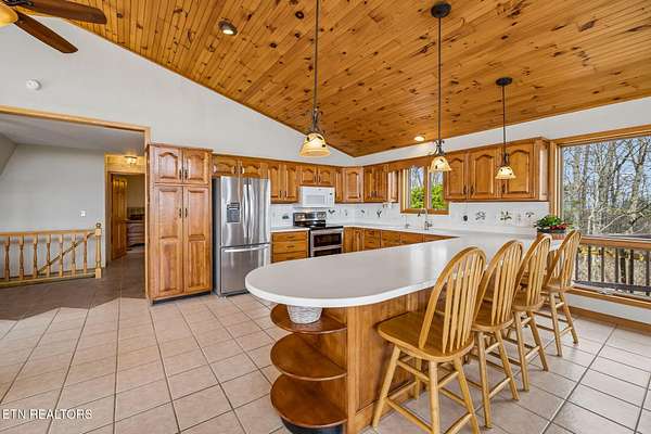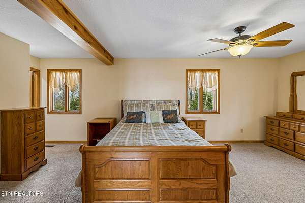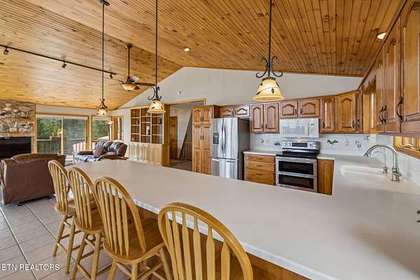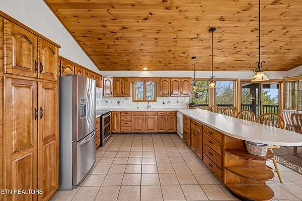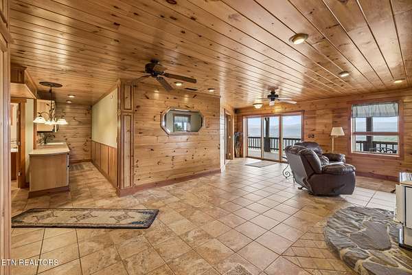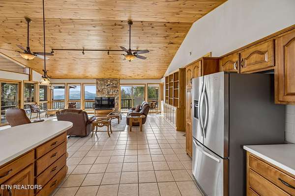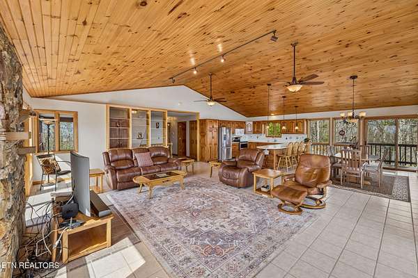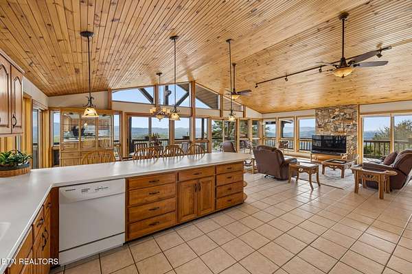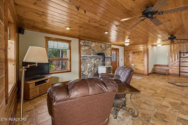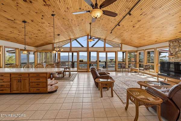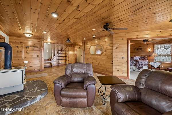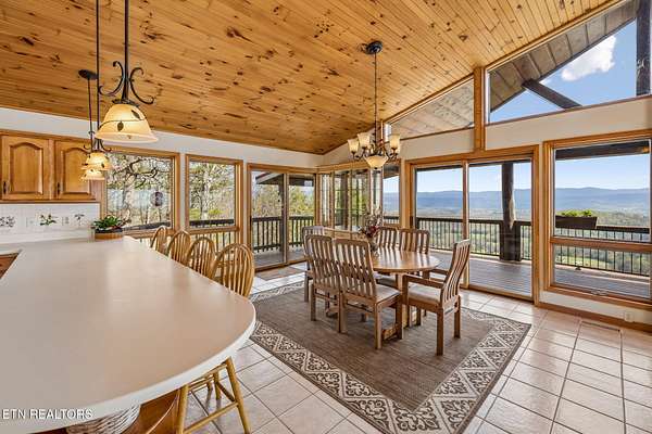 Enjoy breathtaking 180 degree long-range mountain and valley views stretching all the way to North Carolina from this beautifully remodeled 3-bedroom, 2-bath stone and log-siding home (septic is approved for two bedrooms). Perched at the top of one of the highest points in the gated community of Laurel Lakes, this property offers exceptional privacy and stunning scenery. The open-concept kitchen and family room are perfect for everyday living and for entertaining. Step out onto the expansive deck and take in the views, or enjoy additional living space in the finished walk-out basement with a cozy wood stove and views from another amazing deck on the lower level. Rain barrels convey to water your plants on the deck, and the detached three car garage provides ample room for vehicles and outdoor toys. Equipped with solar panels for alternate energy efficiency, this home blends comfort with sustainability. Residents enjoy private community amenities including a private spring-fed lake, private sandy beach, boat ramp, picnic pavilion, and access to walking trails, fishing, kayaking, paddleboarding, and swimming - all just minutes away from the Cherokee National Forest, and in driving distance to Lookout Mountain, Dollywood, Cades Cove, Bald River Falls, etc. This is the perfect location for those seeking adventures, tranquility, and the best of East Tennessee living. Buyer and buyer's agent to verify all facts.