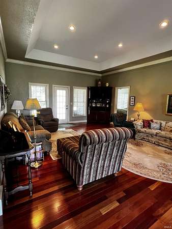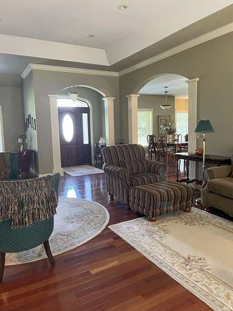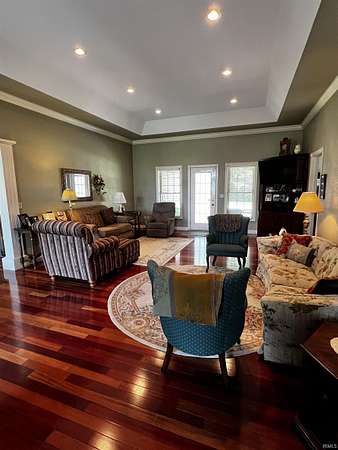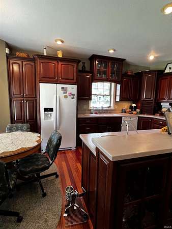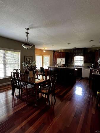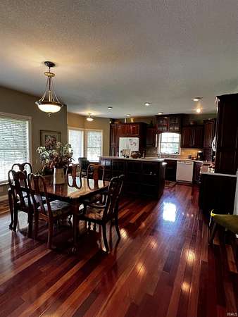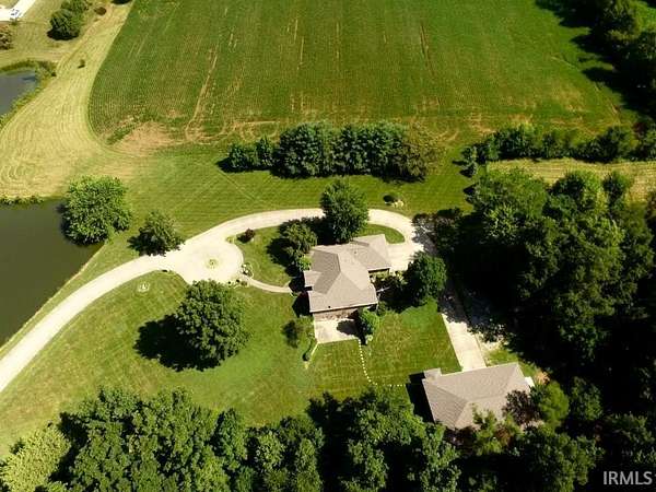Take a look at this hidden gem! Lovely brick home on approximately 4 acres with view of pond in Barr-Reeve school district. Wooded area with lots of privacy. Private drive. Home is 2 bedroom with 3 full bathroom on main level. Walkout basement has large open kitchen/living room space with 2 bedrooms and 1 full bathroom. Hardwood floors throughout, Custom Cabinetry, Office and laundry room. Spacious 2 car attached garage as well as Large 40 x 60 Detached brick garage/man cave with full bathroom. Concrete driveway, back paver patio and covered porch. Landscaped, roofs on both buildings 1 year old, boiler with in-floor radiant heat, sprinkler system. Well maintained. 4 acres more or less subject to survey. All Appliances to go with home as well as a lot of the larger furniture.