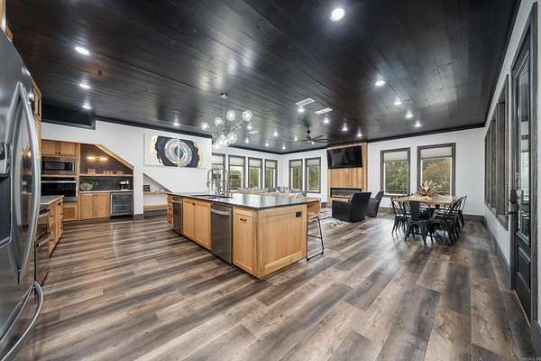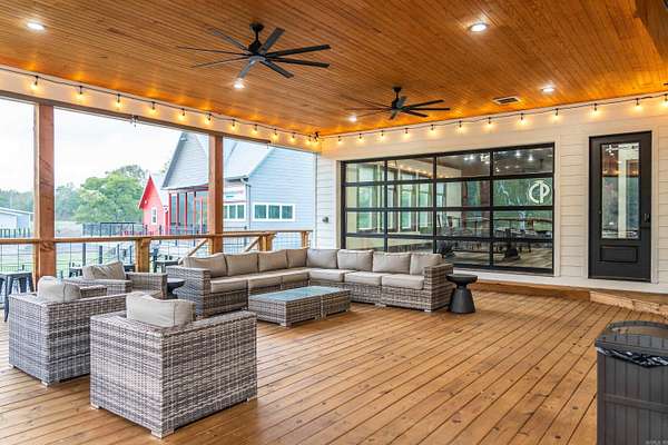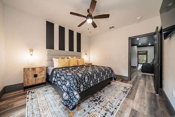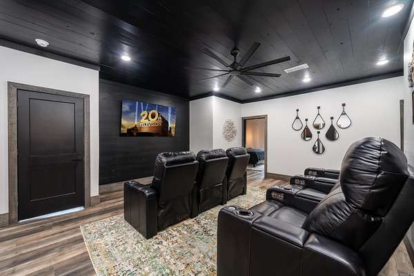 Large riverfront cabin in Glenwood, AR that sleeps everyone and still feels peaceful! This stunning 6BR/6.5BA luxury vacation home in a gated neighborhood overlooks the Caddo River and sleeps up to 24, with incredible river and nature views from every level. Designed for relaxing and entertaining, the main level features a fully stocked kitchen w/ double ovens, microwaves & dishwashers, spacious living room w/ fireplace, dining for 12, game room, laundry, and a primary suite w/ spa-style bath. Enjoy a massive, covered patio w/ seating for 10 and two outdoor TVs. Upstairs offers four king suites (one w/ queen bunk), bonus theater room w/ coffee bar, plus extra laundry. Third level includes a bunk room and full bath. Luxury vinyl floors, quartz counters, and resort-style amenities throughout. Ideal as a short-term rental, family retreat, or luxury getaway--just minutes from downtown Glenwood and Hwy 70. Wake to river mornings, float the Caddo, and gather by the fire at night. Call today!