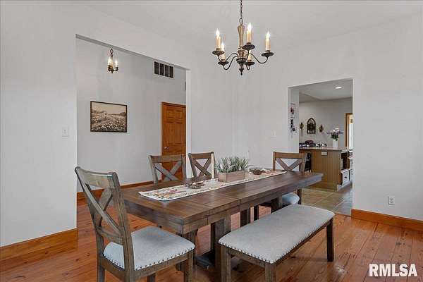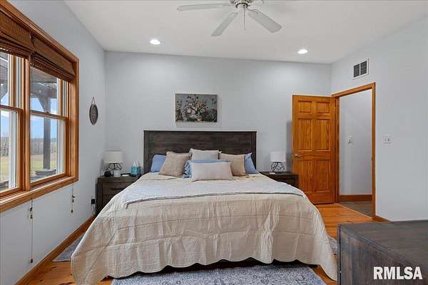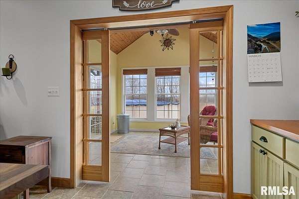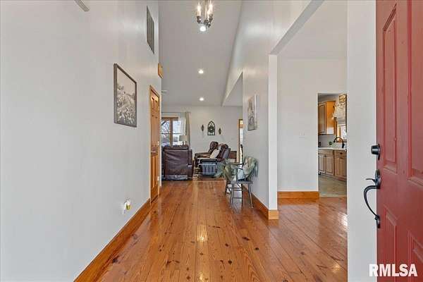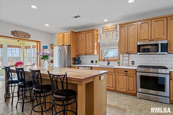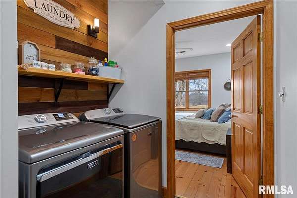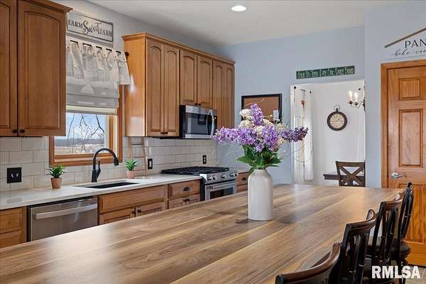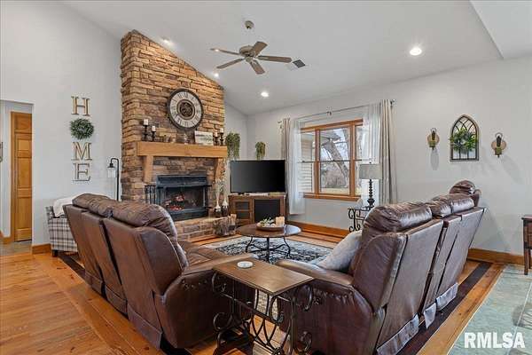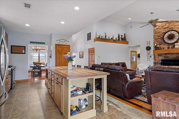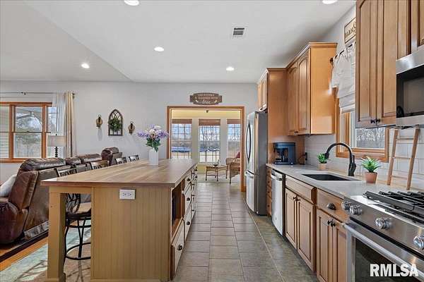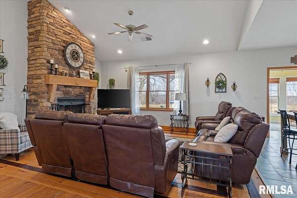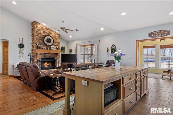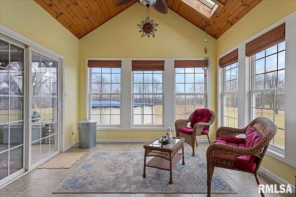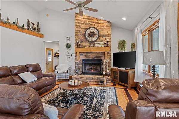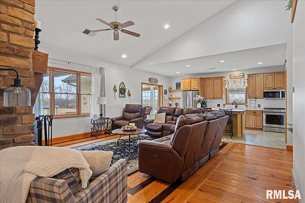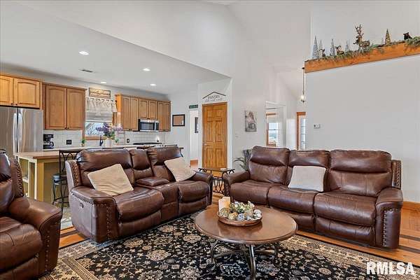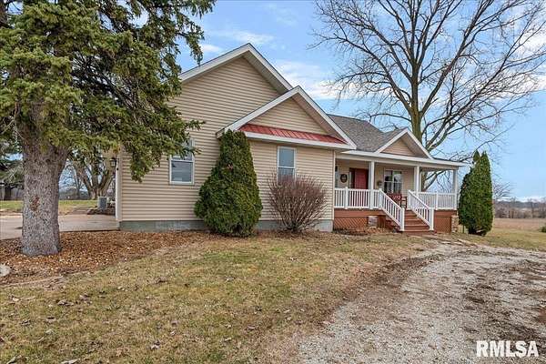 WOW! Rare opportunity to own a private 5.21-acre retreat just outside of town. This one-of-a-kind property offers peaceful country living with the convenience of nearby amenities. Surrounded by open countryside and abundant wildlife, you'll enjoy incredible views of nature right from your own backyard. The home is designed for comfort and entertaining, featuring an open-concept layout with a spacious kitchen, updated countertops (2024), newer appliances (2023), and a large island that flows into the impressive living room with vaulted ceilings and beautiful hardwood floors throughout the main level. The main floor offers three generous bedrooms, including a private primary suite with jetted tub and walk-in closet with custom shelving. The finished basement adds exceptional space with tall ceilings, a gas fireplace, an additional bedroom, and full bathroom. A bright sunroom with skylights sits just off the kitchen, showcasing breathtaking views of the surrounding land and leading to a pergola-perfect for relaxing and enjoying the quiet setting. The acreage provides endless possibilities with room for hobbies, recreation, and privacy. A heated outbuilding with workshop, bathroom, and ample storage is ideal for projects and equipment. Major updates include furnace (2024), water heater (2023), AC (2022), roof (2023), and washer/dryer (2024). This rare property won't last!