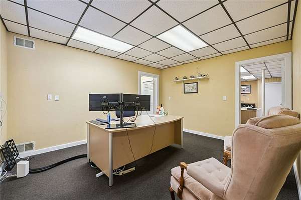 Move-in ready office/warehouse space conveniently located just minutes from Route 30, the PA Turnpike, and Route 136. This versatile property offers approximately 1,600 square feet of professional office space paired with 1,100 square feet of warehouse space, ideal for a wide range of business uses. The warehouse features 10-foot ceiling height and two man doors, providing easy access and functional layout for storage, light industrial, or service operations. Ample space, excellent accessibility, and a strategic location make this an ideal solution for businesses seeking efficiency and visibility in a prime Westmoreland County corridor.
