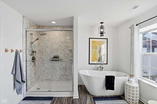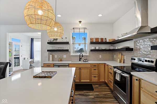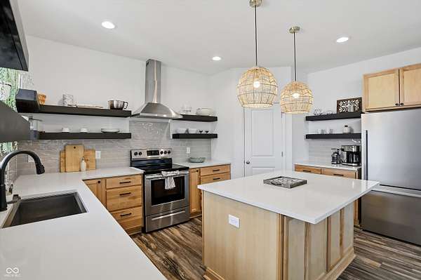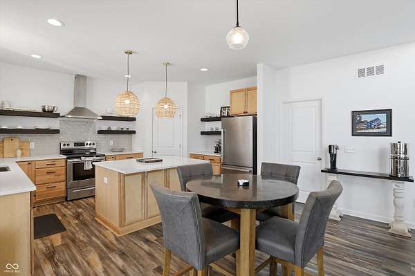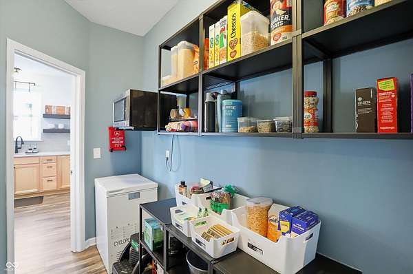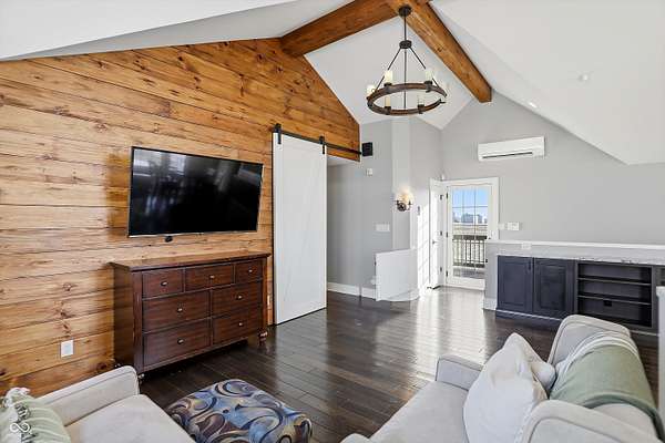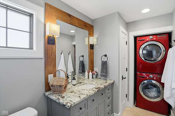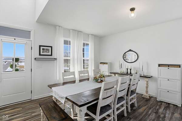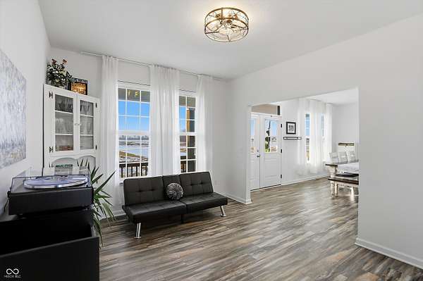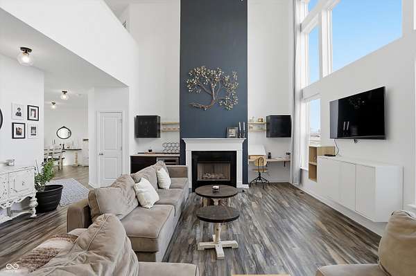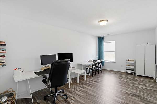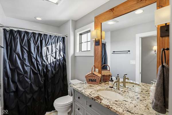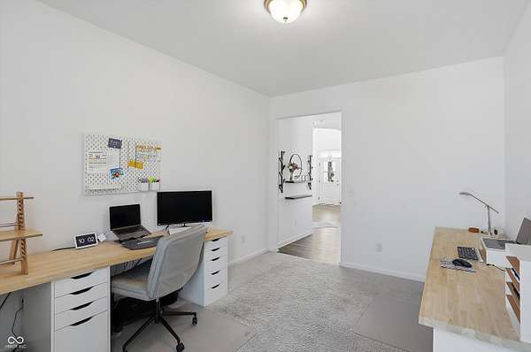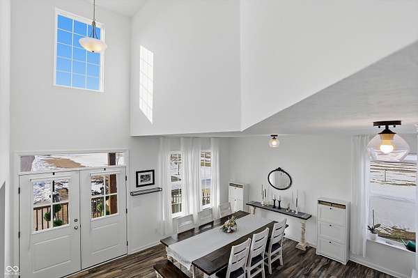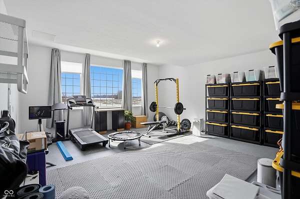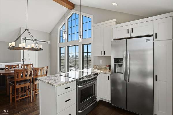 Situated on 28.5 acres in desirable Clark Township within Clark-Pleasant School Corporation, this exceptional property offers privacy, flexibility, and modern construction just minutes from Greenwood amenities, I-65, and I-74. The 2023-built main residence spans 3,560 sq ft and features a soaring two-story entry and cathedral ceiling in the living room, filling the home with natural light from an abundance of windows. The main level includes a formal dining room, sitting room, oversized office, sunroom, breakfast room, spacious kitchen with stainless steel appliances, generous pantry, ample storage, and a 20x20 exercise room with epoxy flooring that offers versatile use. A charming covered front porch welcomes you home. Upstairs, you'll find three bedrooms - all with walk-in closets - including a spacious primary suite with double vanities. The hall bath also features double vanities, and a large upstairs laundry room adds convenience. An expansive upper-level office/den provides additional flexible living space. LVP flooring runs throughout most of the home, with carpet in the bedrooms and select areas. The 2014 carriage house includes a three-car garage plus an additional partial stall with garage door. Above, the 1,104 sq ft apartment offers vaulted ceilings in the kitchen, dining, and living areas, two bedrooms with walk-in closets, one full bath, pantry, washer and dryer, stainless steel appliances, and a private balcony. Over 4 acres are fenced around the homes and include a storm cellar for added safety and peace of mind, while the remaining acreage is currently farmed with continued income potential or opportunity for gardens or orchard space. An interactive virtual tour is attached to fully explore both residences and the property layout.