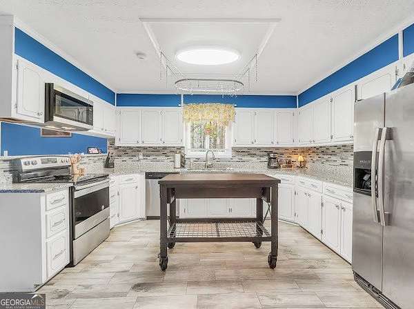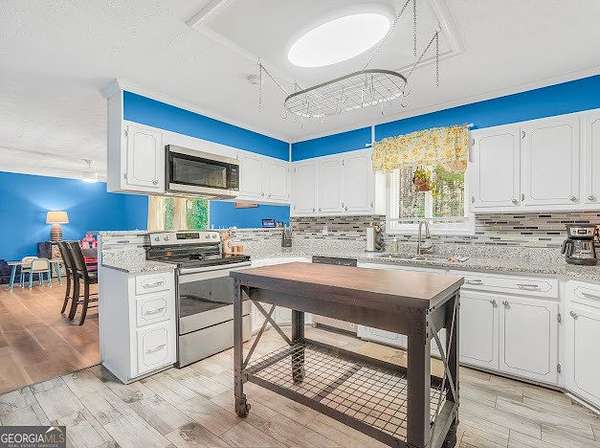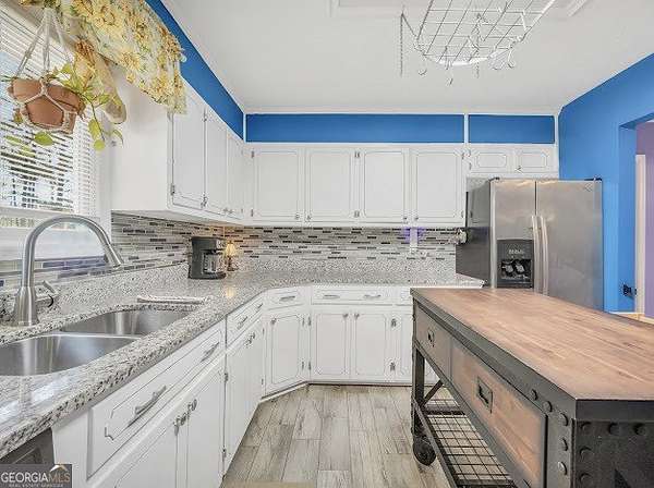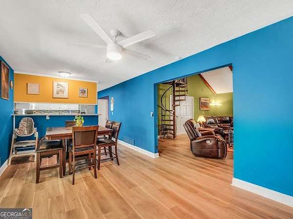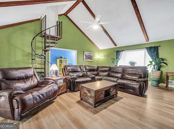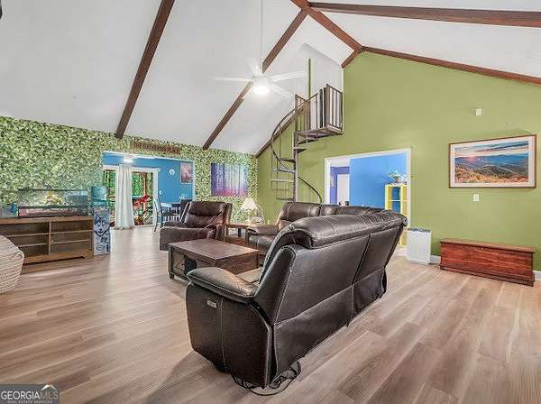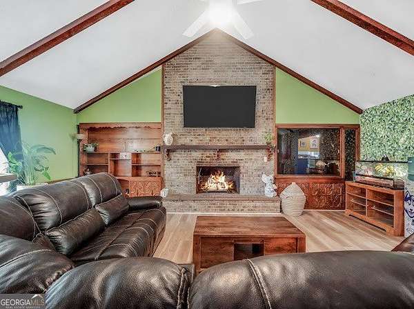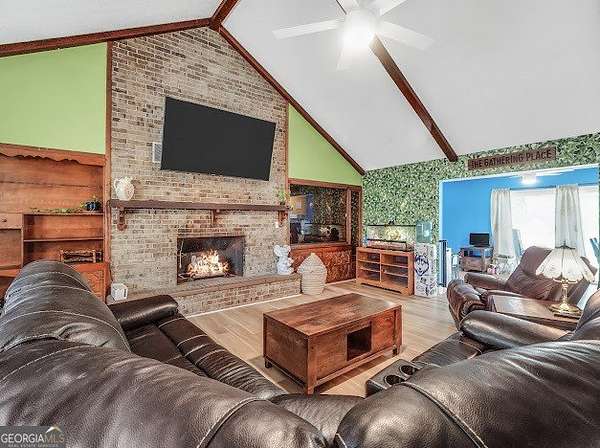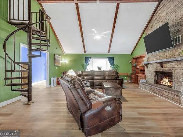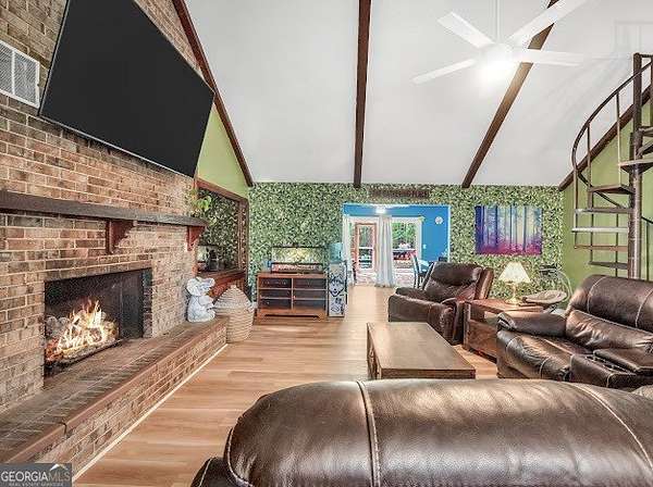 Beautifully unique 3 bedroom, 3 bathroom home situated on 1.66 private acres just minutes from everyday conveniences and the U.S. Soccer National Training Center. This thoughtfully updated home features a stunning oversized brick fireplace with custom built-in wood bookcases and a vaulted, beamed ceiling in the living room. A charming spiral staircase leads to an upstairs bedroom and full bath, offering a perfect guest or private retreat. The main level includes a spacious primary suite with two closets and a renovated bathroom featuring a tiled shower and separate bath. An additional bedroom and updated bathroom are also located on the main floor. The open kitchen has been beautifully renovated with granite countertops and stainless steel appliances, complemented by new flooring throughout the home. Enjoy outdoor living with a back deck overlooking a private, fenced backyard complete with mature fruit trees. Additional features include a rocking chair front porch, storage shed, RV power hookup, abundant storage space, and new siding with classic brick accents.