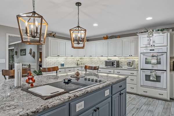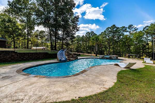 Gorgeous 5/4.5/2 car carport two story 4500+ sf brick home with a 3600 SF HEATED & COOLED shop, fabulous in-ground pool w/waterfall, on 5 acres in Rusk, Tx. There is room for everyone with two extra rooms in garage area currently used as bedrooms, with mini-split, adding additional heated & cooled space. Home originally built in 2006 with major remodeling beginning in 2019 with entire upstairs added including 2 master size bedrooms and 2 master size baths with landing. Large floored attic with spray foam insulation, whole house generator, new flagstone patio, new sidewalk, new firepit. Granite countertops in 22 x 21 kitchen, with double ovens, recessed lighting, crown molding, trey ceilings, and numerous built-ins. Wood burning fireplace w/gas starter. 40 x 90 shop with stained concrete floors, two 12' rollup doors, upstairs storage, downstairs kitchen and full bath. Propane gas heat in shop. Covered patio behind shop overlooks pool. New gated electric entry with remote. New security system. Optional extra acreage is available upon request. Call today for your appointment to see this one-of-a-kind family retreat with all the amenities of that small, home-town community you have been dreaming about!