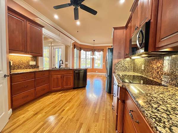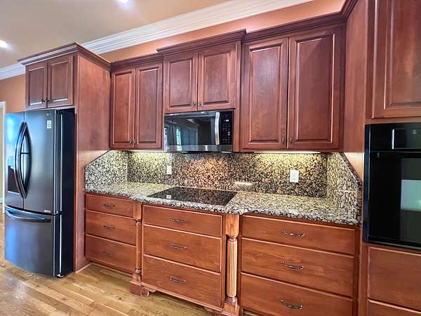 - Built-In Electric Oven, Cooktop, Dishwasher, Disposal, Microwave, Refrigerator