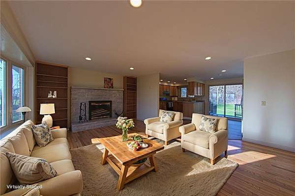 Welcome to your perfect blend of space, comfort, and modern updates! This beautifully maintained 4-bedroom, 2.5-bath split-level home is set on an expansive 3.5-acre lot, offering the privacy and room you've been searching for. 2 bedrooms and a full bath on the first floor, 2 bedrooms on the second floor with a half bath. First floor laundry. Step inside to discover a bright, open, and highly functional layout designed for both everyday living and effortless entertaining. The home features newly refinished hardwood floors and fresh paint throughout, creating a clean, move-in-ready feel. The inviting living area centers around a charming wood-burning fireplace surrounded by custom oak built-ins-perfect for cozy evenings. The updated kitchen featuring all wood cabinetry and a large pantry is equipped with brand-new appliances, including a wine cooler, making it ideal for hosting and enjoying time with family and friends. Downstairs, the finished lower-level family room and a full bathroom with a jacuzzi tub provides additional versatile living space, perfect for a media room, play area, or home office. Enjoy the convenience of a walkout basement and a 2-car attached garage featuring a brand-new garage door. Outside, the fenced-in yard offers a great space for pets, play, or relaxing while taking in the surrounding natural beauty of your private acreage. Close to shopping and all amenities Village of Caledonia has to offer. With its combination of modern updates, generous space, and peaceful setting, this home truly has it all. Don't miss your opportunity-schedule your private showing today! Delayed negotiations till 4/17 at 6 pm.