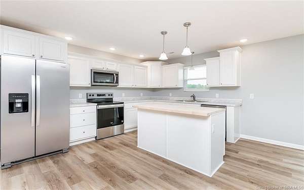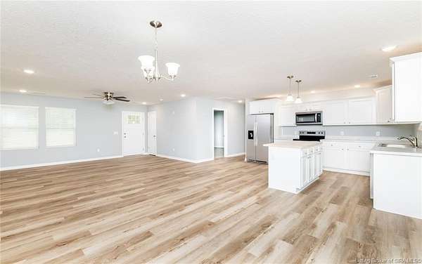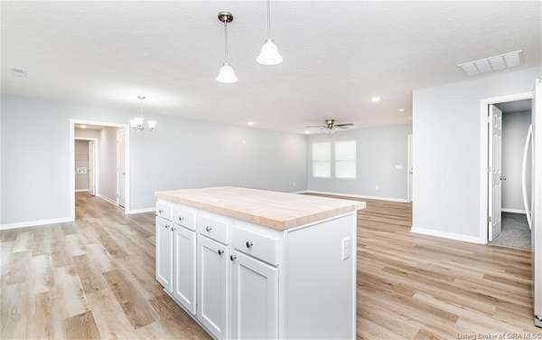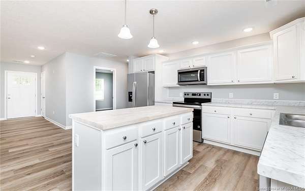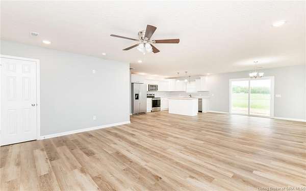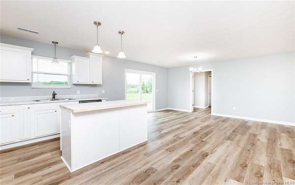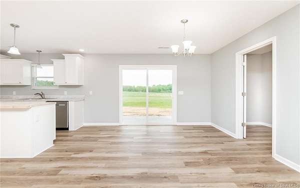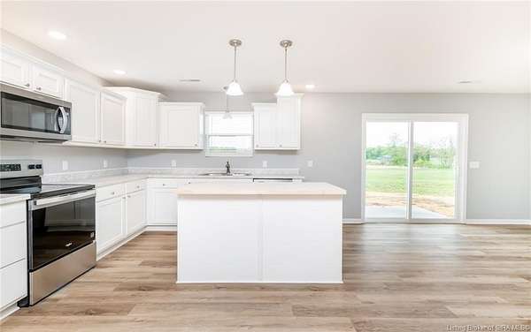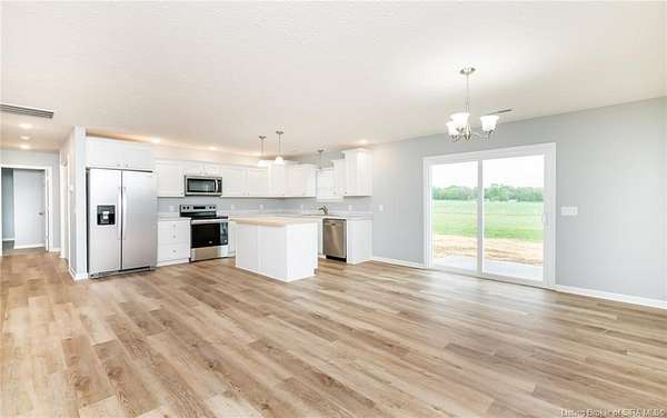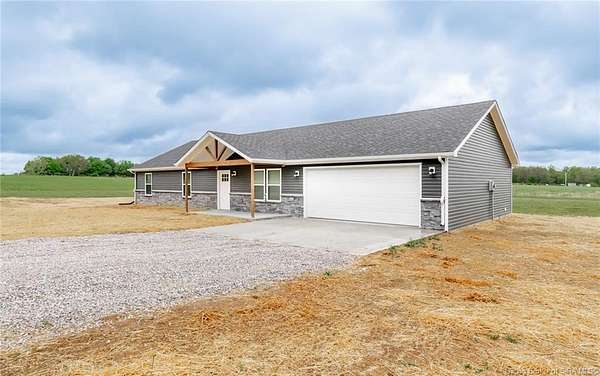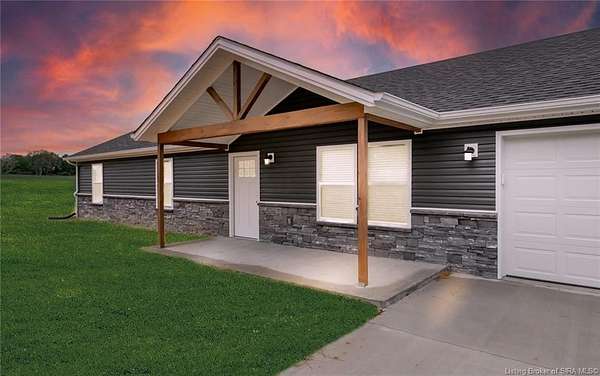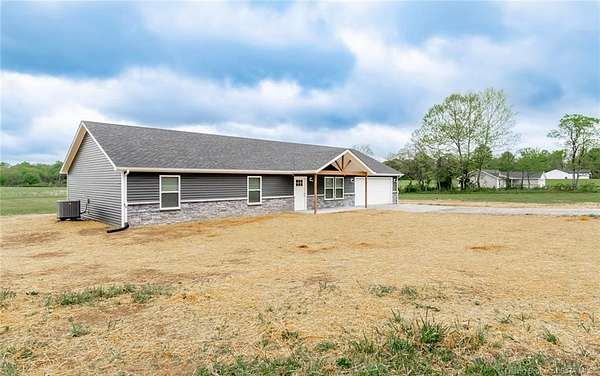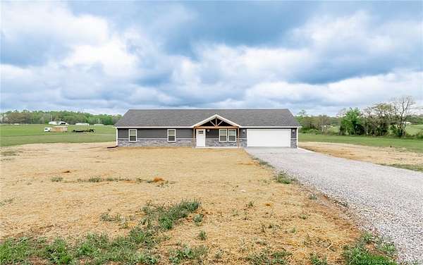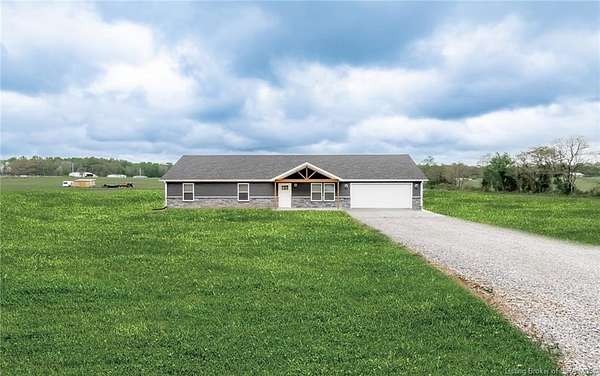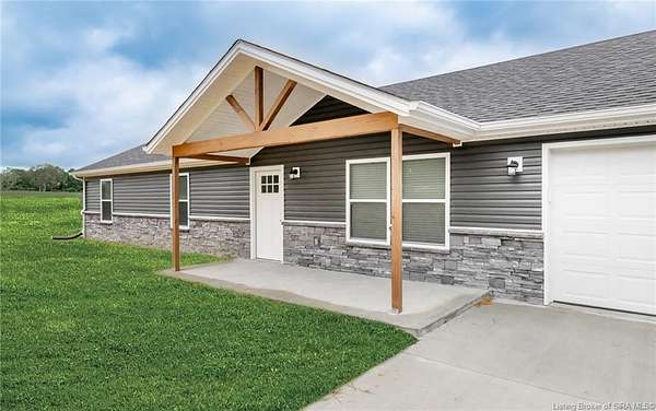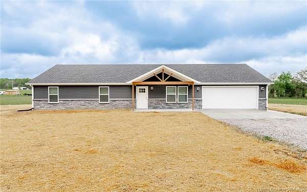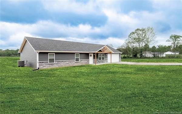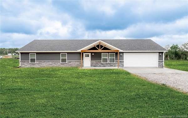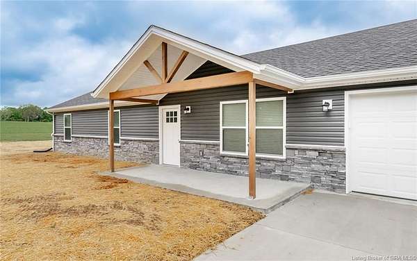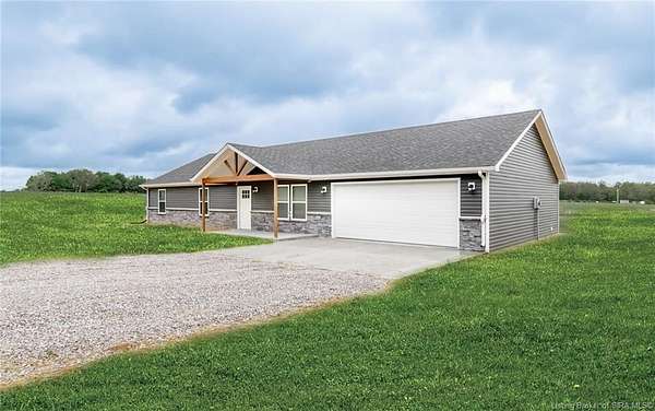 This stunning one-level NEW CONSTRUCTION features a contemporary VINYL AND STONE exterior, offering both durability and style. With 1,594 SQ FT, three spacious bedrooms, and two baths, this residence is perfect! Nestled on two acres in LEXINGTON, Indiana, this home provides an ideal blend of tranquility and convenience. Enjoy the peace of country living while being just a short drive from I-65, ensuring easy access to everything you need. Step inside to find a warm and inviting atmosphere, with neutral colors flowing throughout. The open floor plan seamlessly connects the living, dining, and kitchen areas, making it perfect for entertaining and everyday life. The exterior of this home is maintenance-free, allowing you to focus on what you love without the worry of upkeep. Inside, the main living area features easy-to-maintain laminate flooring, a BEAUTIFUL KITCHEN with stainless steel appliances, a center island, and a HUGE walk-in PANTRY with plenty of storage in this home! The primary bedroom includes a generous closet and an attached bath. The dedicated laundry room is conveniently located next to the two-car garage and features the walk in pantry and Mud Room. Relax on the charming covered front porch or unwind on the open rear patio, which is perfect for taking in the scenic views of your backyard. Don't miss your chance to make this exceptional property your new home!