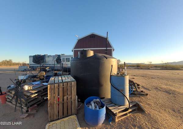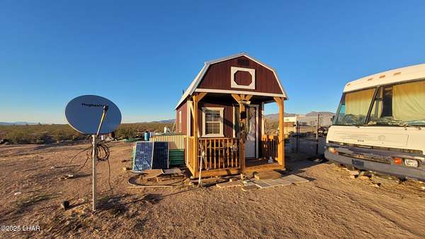 Excellent section of Stage Coach Rancho Santa Fe! Just over 10 acres is this extremely rare opportunity for those buyers looking to take advantage of what this highly desirable rural location has to offer! Nestled between the elevated Haulapai Mountains of Kingman, AZ and the active Colorado River/Lake Havasu City area, this location offers flexibility to do whatever you choose at your own pace. Near so many options, but not too close to anything, it's a jewel. The best of what this region of Mohave County has to offer awaits you. This parcel is turn-key with amenities ready for year-round use! Septic System is already installed with 2000 gallon water system also up and ready folks! Approximately 2 acres (that's over 87,000 square feet) has been cleared and is a setting left only to your imagination for any possibility . Dirt roads are maintained. Most parcels out this way don't offer what this one does and it's list price is a gift compared to it's true value. Agents, grab your buyers and take a look. The 300 sf ''barn style'' outbuilding has great utility and stays along with the motorhome that is on site which will convey upon purchase.