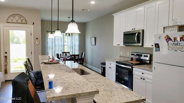 Imagine your family residing in this delightful 2022-built home, nestled on 1.86 acres, featuring a driveway, two-car garage, and a quaint patio in the back. The home boasts an open floor plan, granite countertops, a breakfast bar, a dining area, LVP flooring, stainless steel appliances, and a 4-year-old air conditioning system. Large windows bathe the bedrooms in natural light. With four spacious bedrooms and two full bathrooms, the home provides ample living space. Why not make it yours today!
