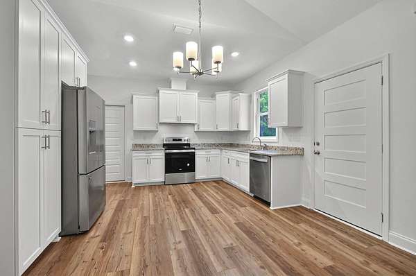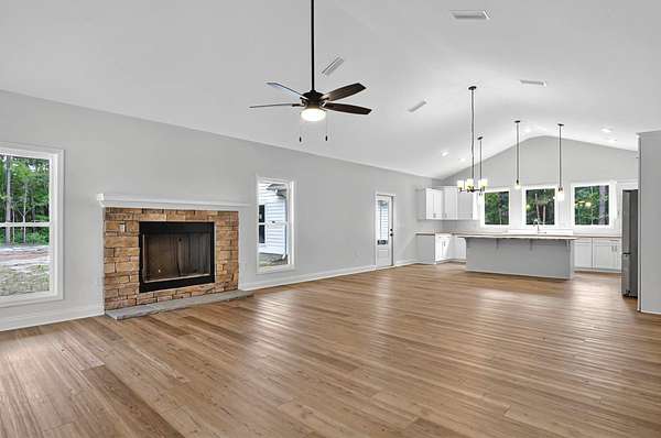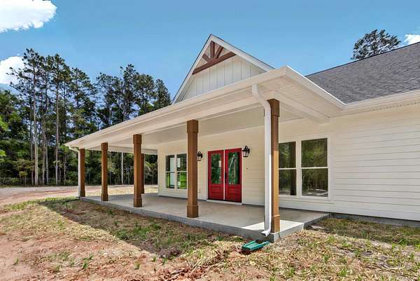 Dreaming of the perfect home with a guest house or in-law suite? This is it! Welcome to this stunning brand-new construction by America's Home Place. The main home features four extra large bedrooms, including two luxurious master suites with oversized walk-in closets, and three full bathrooms. Inside, you'll find an open-concept layout with beautiful luxury vinyl flooring throughout, a stylish kitchen with butcher block countertops, a large hidden pantry, and big windows that flood the space with natural light and showcase serene backyard views. Just past the 3-car garage, a fully equipped guest suite awaits-complete with its own private living area, kitchen, office, bedroom, and bathroom. It's ideal for extended family, guests, rent it out, or even a private work-from-home retreat. Step outside to enjoy an extra-large, covered front porch-perfect for a porch swing or rocking chairs-overlooking 3.6 acres of peaceful, private land. There's even room in the backyard to add a pool and create your dream outdoor oasis. Don't miss your chance-this one truly has it all!