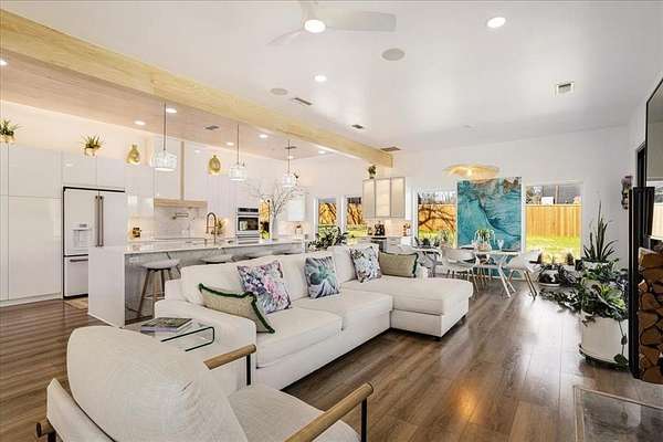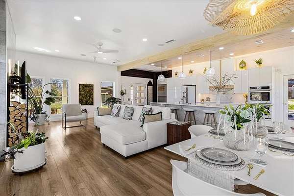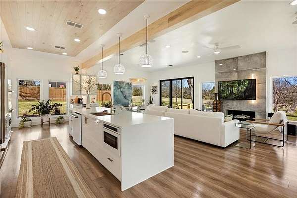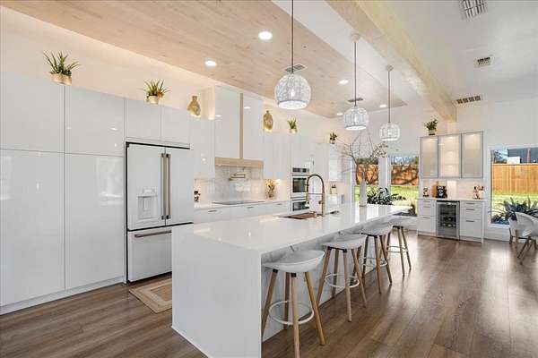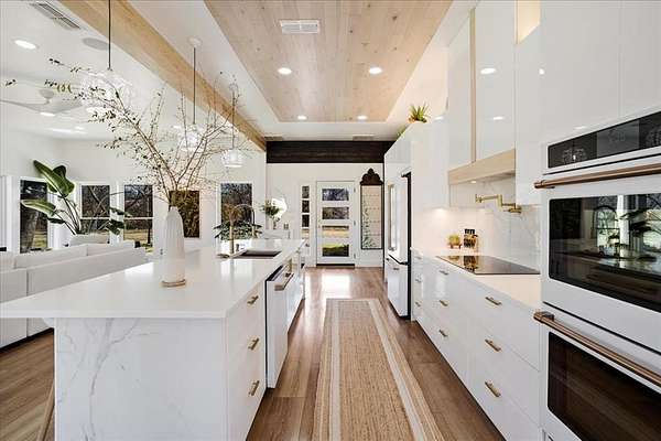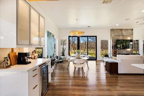 - Built-In Features, Built-In Wine Cooler, Cable TV Available, Decorative Lighting, Eat-In Kitchen, Flat Screen Wiring, High Speed Internet Available, Kitchen Island, Natural Woodwork, Open Floorplan, Second Primary Bedroom, Walk-In Closet(s)