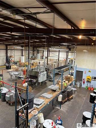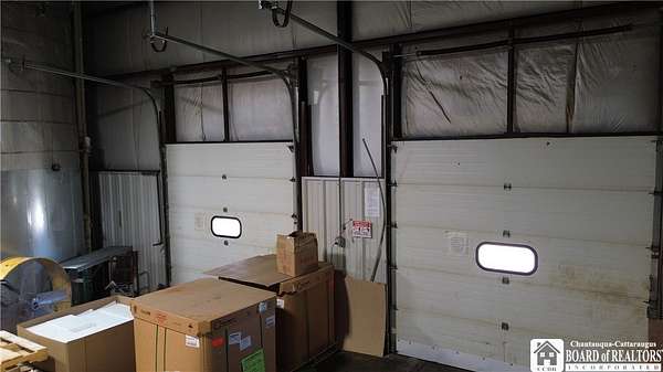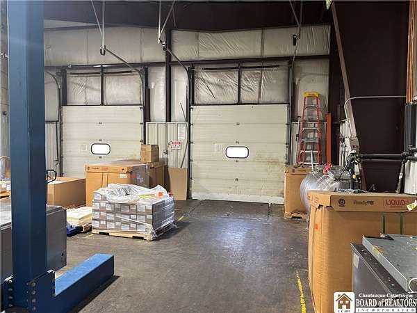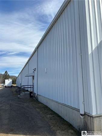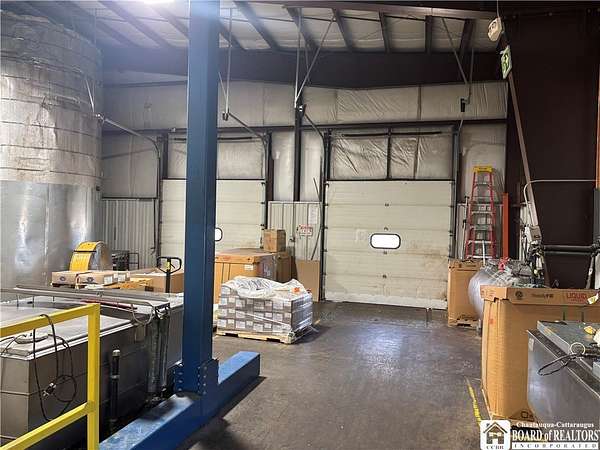 Outstanding industrial facility available just outside the Village of Wellsville, NY. This 2.045-acre property (per survey) offers a high-capacity, heavy-duty setup ideal for manufacturing, processing, warehousing, or logistics operations. The site is located along a major commercial corridor with direct highway access and potential rail connectivity. The building is constructed with a steel frame and partial cinder block divider and includes 23,016 sq ft of warehouse space, 750 sq ft of second-floor office space. Clear-span interior construction allows for flexible layout and operational flow, with ceiling heights of 18 ft 4 in at the center and 16 ft 4 in at the outside walls, all sitting on concrete floors. The property is equipped with a Greenheck MAU 1,750,000 BTU make-up air furnace delivering 20,000 CFM, and four natural gas-fired boilers powering ten hydronic ceiling heaters for efficient building-wide heat. Two truck-height loading docks and one grade-level overhead door provide easy shipping and receiving access. Utilities include municipal water and private septic. A robust 12-panel, 1,600-amp electric service supports industrial-grade power requirements. There is also a 34x50 barn onsite for additional use. The site offers 600 feet of frontage on State Route 417 and 150 feet on Baldwin Road, ensuring excellent access and visibility. The Southern Tier Extension Railroad runs just across Baldwin Road, providing proximity to a 145-mile freight line that connects Corry, PA to Hornell, NY and serves multiple Southern Tier markets including Jamestown, Salamanca, Olean, Cuba, Friendship, Wellsville, and Alfred Station. Additional Assets (Negotiable): - Four stainless steel storage tanks with a combined capacity of 34,000 gallons - Trade tools such as air compressors and other industrial equipment