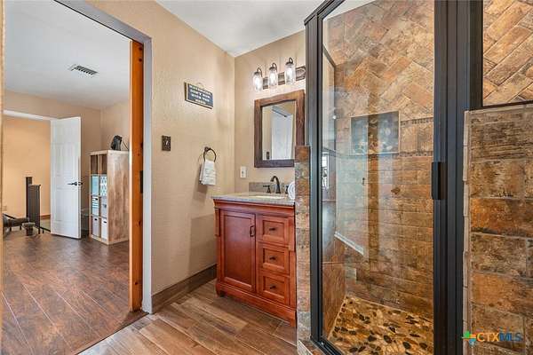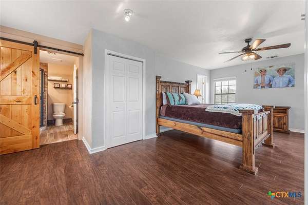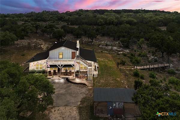 Experience the perfect blend of rustic charm and modern comfort at this stunning 23-acre Gentlemen's Ranch in Spring Branch, Texas. Set on 23.09 acres of beautiful Hill Country landscape, this 2,447-square-foot home offers an ideal retreat for those seeking space, privacy, and recreational amenities. Key Features: 3 spacious bedrooms and 2.5 bathrooms, including a primary suite with a two-way fireplace and breathtaking sunrise views to the east. Open-concept living area with a cozy, rustic vibe throughout. Gourmet kitchen featuring a large island with a bar sink, stainless fridge (2021), propane oven/range, and a perfect spot to enjoy your morning coffee while watching the sunrise. Energy-efficient upgrades, including an on-demand water heater (2022) and a new water pump (2022). Water filtration system (2022) and Starlink rooftop internet for modern connectivity. Multiple living and entertaining spaces inside and out. Exterior highlights include stone and corrugated metal siding, a durable metal roof (2020), upper and covered lower patios, and mature oak trees. Outdoor amenities for the enthusiast: three deer stands, two feeders, shooting ranges, game pen, horse stables, and negotiable equipment such as a ranch truck, riding mower, push mower, trimmer, and blower. This private neighborhood has access via a shared easement, with additional direct access to the Guadalupe for recreational activities such as fishing, tubing, and kayaking. Furnishings, Americana artwork, and select outdoor equipment are negotiable, offering a turnkey opportunity for the right buyer. Local favorites: Screaming Goat for dinner, Bourbon and Branch for cocktails, or check out the newly opened The Desert Spoon (weekend brunch, lunch, & dinner). This property is truly a rare find - offering expansive acreage, thoughtful upgrades, and a lifestyle that celebrates both comfort and the great outdoors. Schedule your private tour today and discover everything 3487 Rust has to offer!