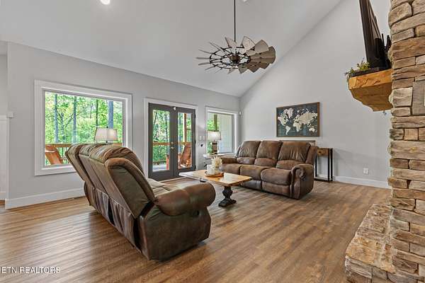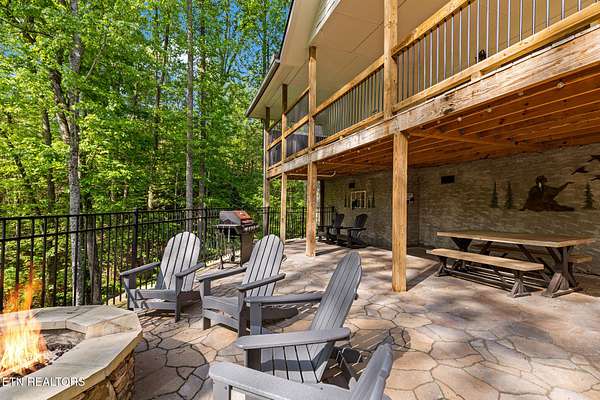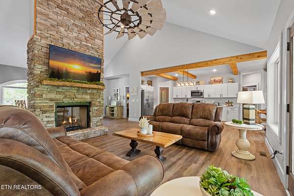 OFFERING FREE APPRAISAL OR DISCOUNTED RATE WITH PREFERRED LENDER Welcome to Summit Trails Sanctuary - A Luxury Mountain Retreat in The Summit on Bluff Mountain Tucked away in the majestic Great Smoky Mountains of East Tennessee, Summit Trails Sanctuary offers the perfect blend of luxury, comfort, and seclusion. Located in the highly desirable The Summit on Bluff Mountain subdivision, this newer-construction home is surrounded by mature trees and natural beauty, offering incredible privacy and a peaceful wooded setting - complete with a creek that touches the property. Step inside and you're welcomed by a gorgeous see-thru stone fireplace that elegantly separates the formal dining room from the cozy living area. The open-concept design connects the chef's kitchen, living room, and eat-in kitchen area, allowing for effortless entertaining and everyday comfort. The home features three private suites, including two true master bedrooms, each with its own bathroom and walk-in closet. A spacious bonus room, currently set up as a game room with a pool table and arcade machines, adds extra versatility and fun. Step outside to the covered back porch and take in the sounds of the creek and rustling trees while enjoying your morning coffee or evening drink. The porch includes a hot tub and lounge seating, while the lower patio offers a fire pit, picnic table, and grill, all inside a fully fenced backyard-ideal for private outdoor gatherings. This property is completely TURN KEY-sold fully furnished and ready for immediate use as a short-term rental, second home, or full-time residence. Whether you're looking for a peaceful retreat or an opportunity to generate rental income, this home is ready for its next chapter. With 2,712 sq ft of heated/cooled space and 3,570 total sq ft including the garage, porches, and deck-this private mountain escape offers beauty, flexibility, and charm in one of East Tennessee's most scenic locations. Privacy. Nature. Possibility. Schedule your showing at Summit Trails Sanctuary today!