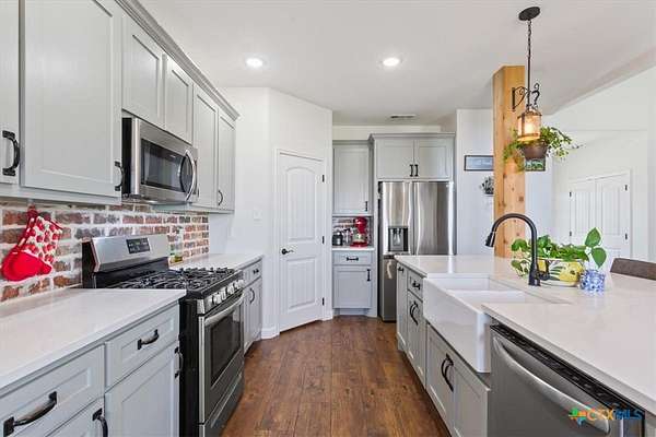 - Dishwasher, Disposal, Electric Water Heater, Gas Range, Microwave, Range, Some Gas Appliances