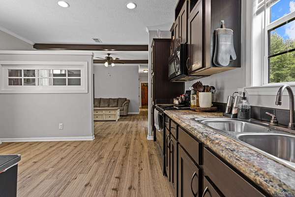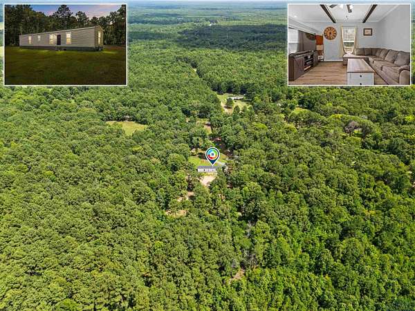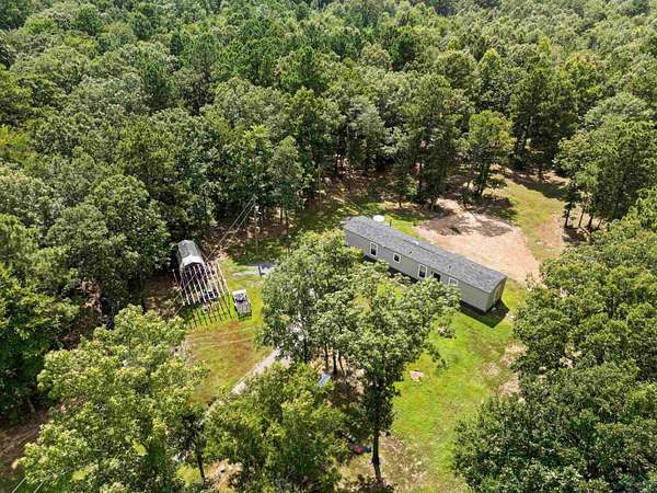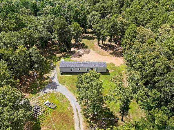 Well-maintained 3-bedroom, 2-bathroom, manufactured home, offers a comfortable split floor plan, situated on a peaceful and private 6.9-acre tract. Surrounded by nature, the property provides a serene setting ideal for those seeking a quiet, country lifestyle. Inside, the home features a comfortable layout with lots of natural light and functional living spaces. The primary suite includes a large soaking tub, perfect for relaxing at the end of the day. The kitchen and dining areas are open and practical, designed to accommodate everyday living and entertaining. Outdoors, the property includes a 225 sq. ft. shop--ideal for storage, hobbies, or workspace needs. The land offers both open and wooded areas, giving it a secluded feel while still allowing room to explore, garden, or enjoy outdoor activities.