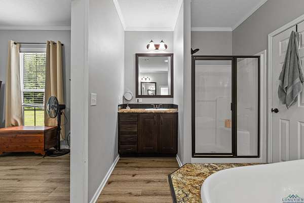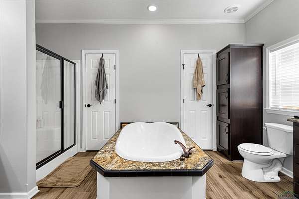 - Ceiling Fan, Shades/Blinds, Vinyl Flooring, Whirlpool Type Tub