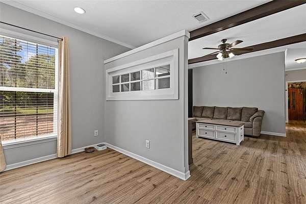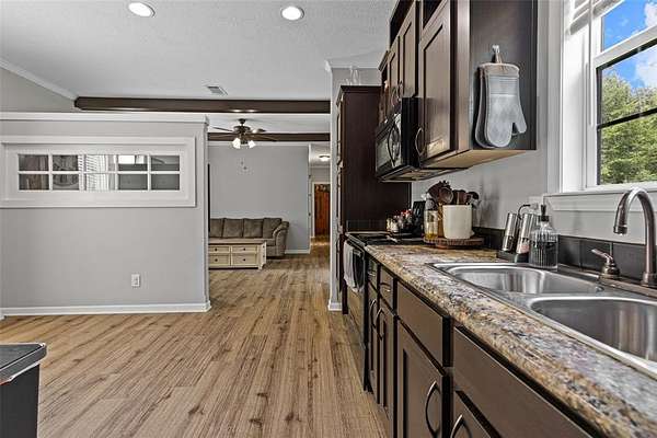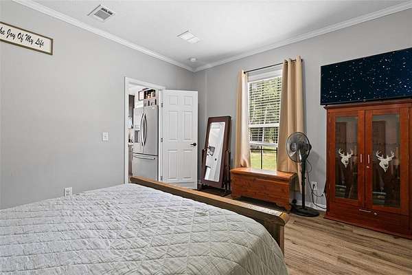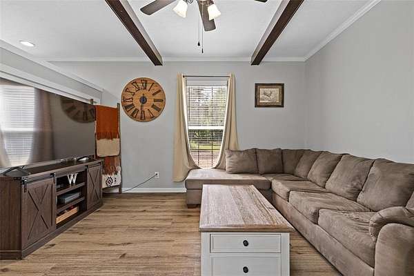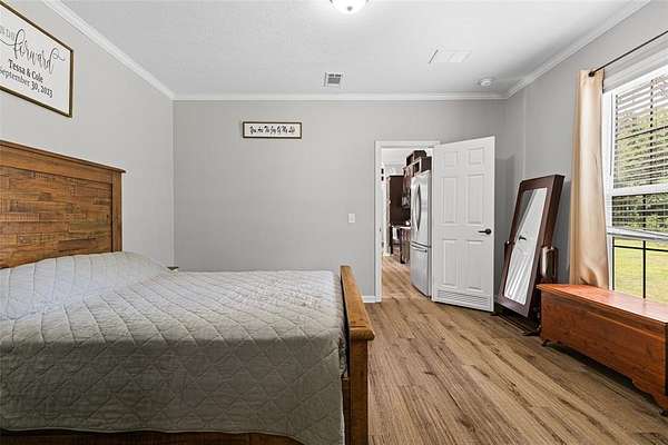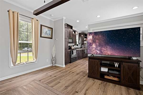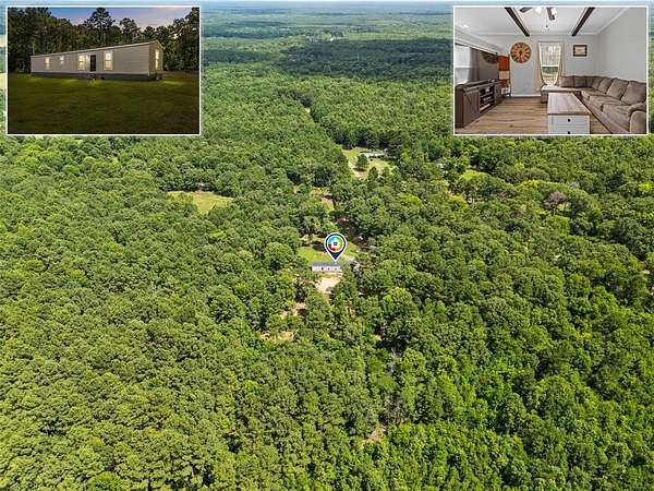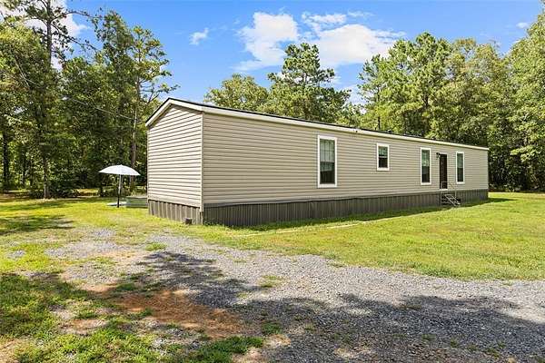 Well-maintained 3-bedroom, 2-bathroom, manufactured home, offers a comfortable split floor plan, situated on a peaceful andprivate 6.9-acre tract. Surrounded by nature, the property provides a serene setting ideal for those seeking a quiet, countrylifestyle. Inside, the home features a comfortable layout with lots of natural light and functional living spaces. The primary suiteincludes a large soaking tub, perfect for relaxing at the end of the day. The kitchen and dining areas are open and practical,designed to accommodate everyday living and entertaining. Outdoors, the property includes a 225 sq. ft. shop—ideal forstorage, hobbies, or workspace needs. The land offers both open and wooded areas, giving it a secluded feel while stillallowing room to explore, garden, or enjoy outdoor activities.