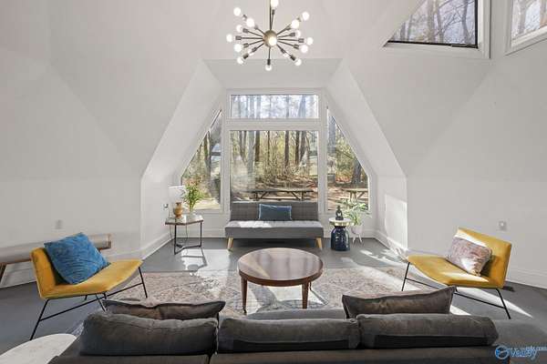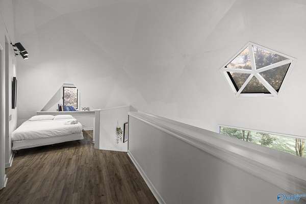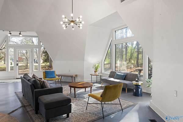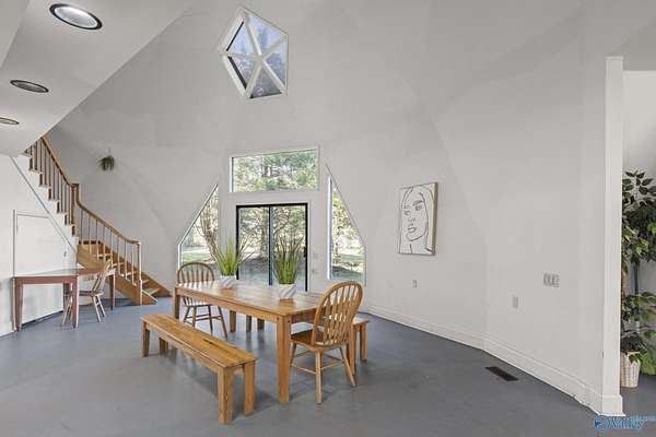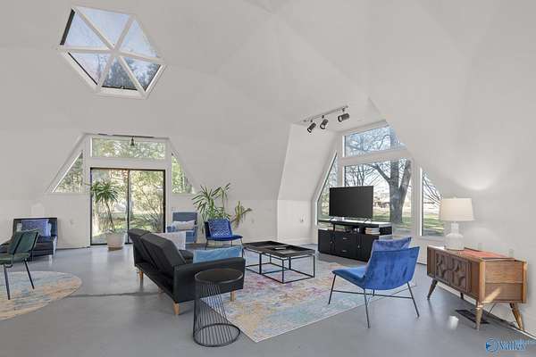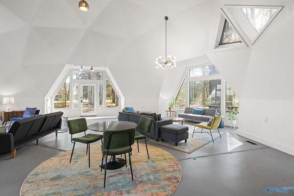 349 Bell Circle is unlike anything you've ever seen! If you like cookie cutter this is NOT the house for you! This Geodesic home sits on 1.5 acres and is like a work of art! You can experience the peace and quiet of the country but is located just 7 miles from downtown Huntsville, close to restaurants and grocery stores. When you walk in you are immediately greeted with large open living spaces and angular windows that let the sunlight pour though. Priimary bedroom is located on the fist floor, there are 2 other bedrooms and a loft on the second floor. Custom underground ventilation system to keep utility bills low. Decks surrounding the house for outdoor entertainment! Dont miss this one!