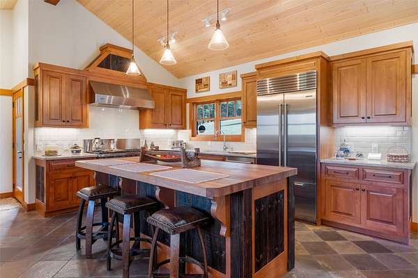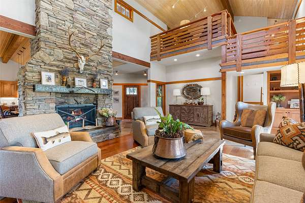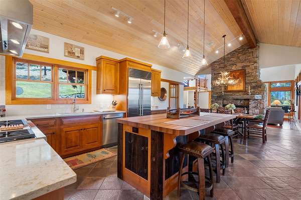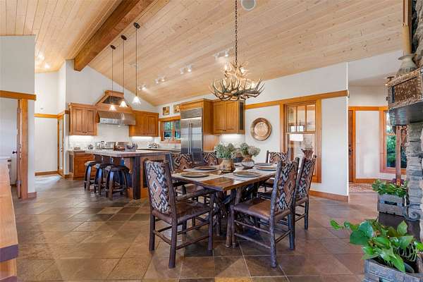 Escape to 349 Harlan Creek Road, a meticulously crafted luxury estate nestled on over 30 pristine acres in the heart of Montana's coveted Bitterroot Valley. This unparalleled property offers the perfect blend of privacy, recreation, and refined living, with creek frontage, direct access to National Forest Service land, and breathtaking panoramic views. The main house, encompassing approximately 4,252 sq ft, features 4 bedrooms and 3.5 bathrooms, boasting exquisite details such as stunning floor-to-ceiling stone fireplaces and vaulted ceilings adorned with rustic wood beams. The gourmet kitchen, a chef's dream, is outfitted with new custom cabinetry, elegant quartz countertops, and top-of-the-line stainless-steel appliances from Wolf and Sub-Zero. Step outside to enjoy the approximately 1,050 sq ft of covered porches, perfect for savoring the Montana evenings and immersing yourself in the surrounding natural beauty. A separate 910 sq ft guest quarters, complete with a full bathroom and two-car garage, offers ideal accommodations for guests or extended family. Outdoor enthusiasts will revel in the property's unmatched recreational opportunities. Bordering National Forest Service land, this estate provides direct access to Hunting District 270, renowned for its elk, deer, and other big game. For the avid angler, world-class fly fishing awaits just over a mile away on the legendary Bitterroot River with access close by at Wally Crawford. Harlan Creek, a seasonal stream flowing through the property, adds to the serenity and natural beauty. Since 2019, over $500,000 has been invested in enhancing every aspect of this property, ensuring an unparalleled living experience. From the new custom front door and meticulously renovated bathrooms to the new Rusty Iron pergola and metal garage door, no detail has been overlooked. Don't miss this rare opportunity to own your slice of Montana paradise. Schedule your private showing of 349 Harlan Creek Road today and start living the life you've always dreamed of!