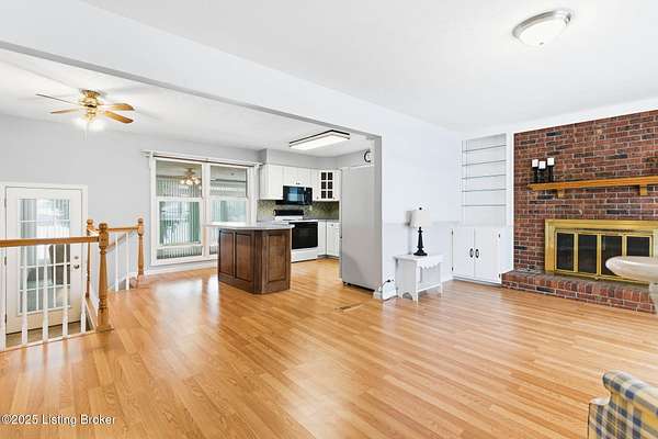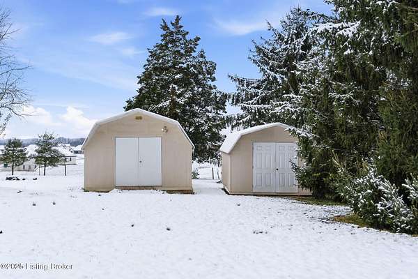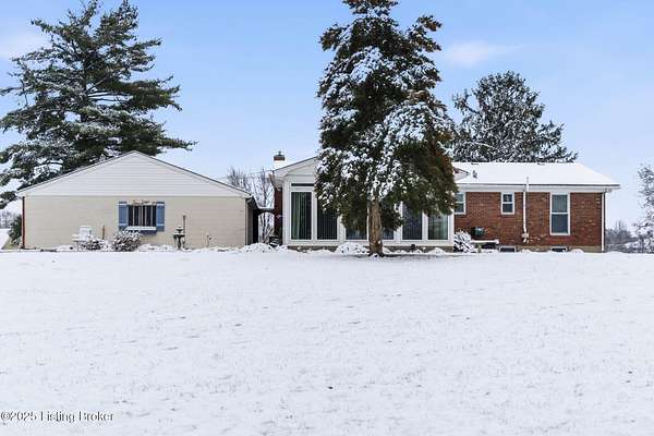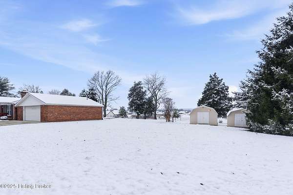 Welcome to this ''Family Treasured'' Home located in North Bullitt ~ Brick Ranch Nestled on 1.5 Acres in Hillcreek that offers 3 Bedrooms & 2 Full Baths with a Finished Basement and 2.5 Car Detached Garage including a Workshop Building & Storage Shed ~ Living Room offers a Cozy Fireplace that opens to the Kitchen & Dining Area ~ Kitchen features White Cabinetry w/All Appliances to Remain ~ Center Island in Kitchen is not mounted and can be removed if preferred ~ HUGE All Season Sunroom leads out to the Patio ~ Primary Bedroom features a Full Bath w/Stand Up Shower ~ Hardwood / Surface Flooring Flows Throughout Main Level ~ Finished Basement offers a Family Room w/Fireplace & Entertainment Area with Room to Grow and Storage ~ Oversize Garage w/Oversize Double Wide Driveway