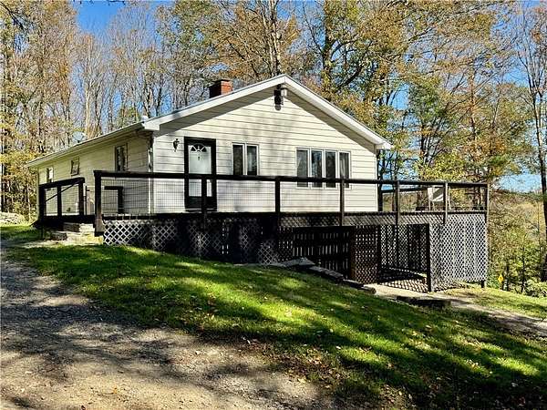 Are you looking for a country home on a quiet country road? Look no further. This 2" x 8" Frame Constructed 4 Bedroom, 2 full bath home on 5.22 ACRES of UPSTATE NY's finest land sits up off the road for privacy. Recent renovations ensure you will be quite comfortable here. On the main floor are 3 Bedroom's, 1-Full bath w/Laundry, Eat-In Kitchen and a large Living Room with a stone fireplace(Elec. Insert) for ambiance. The custom built kitchen cabinets with 2-lazy susans were crafted with wood from the property. First floor has beautiful laminate floors and plenty of closet space. On the lower level there is another bedroom with large closet, Full bath, Family Room and a bonus room(this could be another BR, kitchen or laundry room). The Lower level could be it's own living unit, the bonus room has a drain line so you can make into a kitchen or sink area (bar) could move the laundry downstairs or possibly use for a home business the options are many. 2-year old wrap around deck w/ramp is a really nice feature! There is a 1-Car Garage under the house AND a HUGE detached 26' x 30' Garage/Barn/Workshop with 220 power, concrete floor, a wood stove hook up and attached 12' x30" leantoo(w/lights). There are trails surrounding the property where you will also find sugar maple trees for harvesting maple syrup. Bring your chickens, there is a chicken coop! Do you have horses? This property borders farmland (pond and 20 acres) that could be used to sustain horses and other livestock. Check out the attached drone video. Call me today to see this beautiful property!