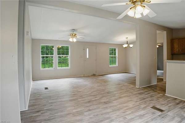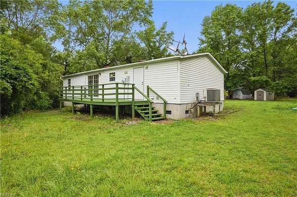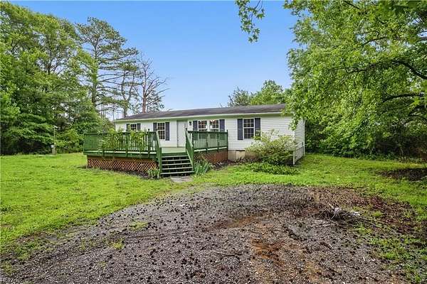 Est $1,211/moPepper Creek 0ff Mobjack Bay! 8.59 Acres +-- One Story home. Very private setting - great for Kayaking out of Pepper Creek, 3 Bedrooms, 2 bathrooms, open floor plan with living area, dining area, & kitchen. Split Bedroom design, vaulted ceiling in living room. 2 decks front and back of the home. Back of home has view of Pepper Creek. Numerous sheds and open workshop 3 Bay Pole Barn with electricity. The property offers affordable waterfront - great for weekend or full time home.