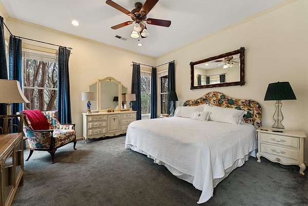 Wonderhorse Farm is a charming country estate located in Fayette County just 2 miles south of the sought-after Hwy 57 corridor. At the heart of the property sits a beautiful 3BR/3.5BA estate home, offering sweeping views over more than 30 acres of open pasture. Perched atop a hill and surrounded by majestic oak trees, the residence provides exceptional privacy, set back over 1,800 feet from the nearest public road. Elegant design w/ “open floorplan”, 10ft. ceilings on the main & 9ft. on level 2. A 4th bedroom could be added on 2nd level with minimal expense. large master BR suite, custom kitchen, masonry fireplace, office down, sunroom/living room w/indoor gas grill, treehouse overlooking lake with full kitchen, sleeping loft and living area. 4-stall barn w/feed&tack room, large equipment shed, 32ft x 68ft hay/equipment barn, "turn key" opportunity with tractor, implements, atv, etc., 1+/- miles of walking/riding trails, 1 lake & 3 ponds, elec. security gate, too much to list!