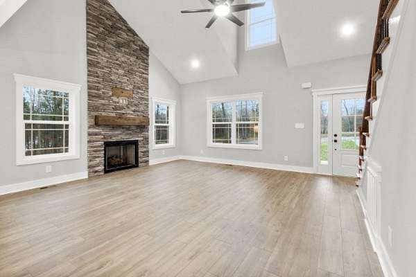 All pictures are example photos. Welcome to your country retreat! Stunning Custom New Construction Home on 1.5 Acres with a three car garage. Enjoy the peace and privacy of country living with this beautifully designed custom home. With no city taxes, no HOA fees, and no restrictions, this property offers the ultimate in freedom and privacy. Step inside to an open-concept living area featuring a vaulted ceiling in the spacious great room, complete with a cozy fireplace and stunning views. The living room flows seamlessly into the gourmet kitchen, where you'll find an oversized island, custom dovetail cabinetry with soft-close drawers, built-in trash bins, there will be a custom wood hood above microwave, and high-end finishes like quartz countertops and a stylish tile backsplash.The main floor also includes a luxurious master suite with a decorative ceiling and an ensuite bath that boasts an extra-large 9' x 5' walk-in tile shower with a rain head, as well as double vanities. Upstairs, you'll find a massive bonus room with three bedrooms and two full bathrooms. Take in the beauty of nature from the comfort of your covered deck, overlooking the expansive backyard. This home is perfect for those seeking a blend of luxury, space, and privacy in a prime location.