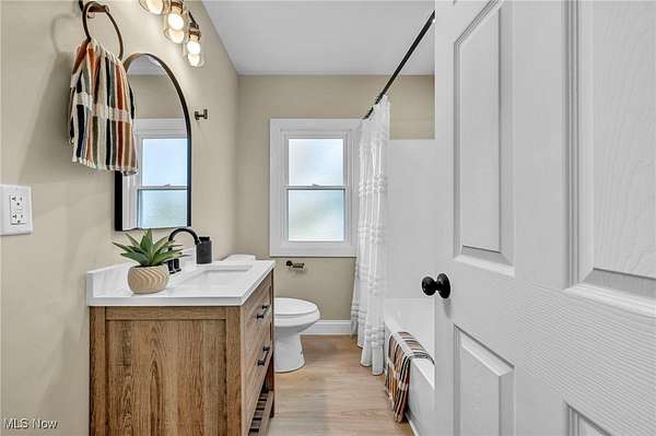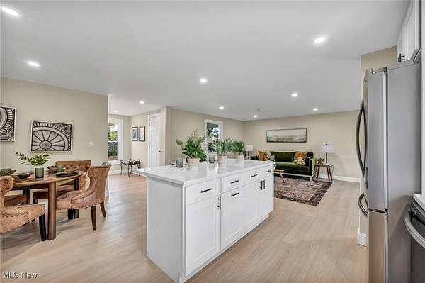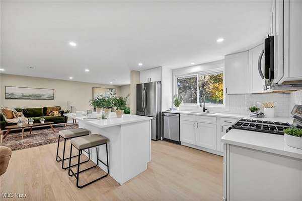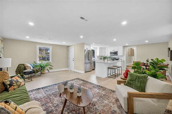 Welcome to 34918 Chestnut Ridge Rd in North Ridgeville! This renovated home sits on two parcels offering a fresh and open residence, a massive land lot, and a large barn with endless potential such as garage space, hobbies, and storage. The many recent updates include an en-suite primary bathroom, a fully updated secondary full bathroom and a dream kitchen. Additionally installed is new exterior siding, flooring throughout, recessed ceiling lighting and new light fixtures, new windows, new electrical panel, new central air! So many amazing updates completed to make it a move-in ready! The open-concept living, dining, and kitchen area is perfect for entertaining. Natural light pours in through the many windows, creating a bright and airy atmosphere throughout. The kitchen showcases beautiful white cabinets, subway tile backsplash, and a spacious island with seating, along with a separate dining area. The home includes 3 bedrooms and 2.5 bathrooms, including a primary suite with a walk-in closet and private bath featuring a walk-in shower. The large basement provides abundant storage space and could easily be finished for additional living area. Around back, you'll find a covered patio with direct access to the living room for convenience. Don't miss this unique property combining updated comfort with extra land and space for possibilities!