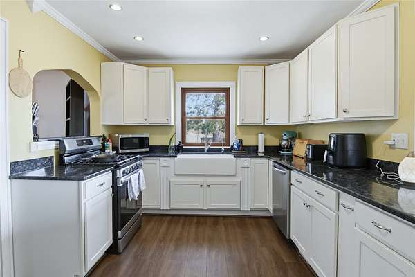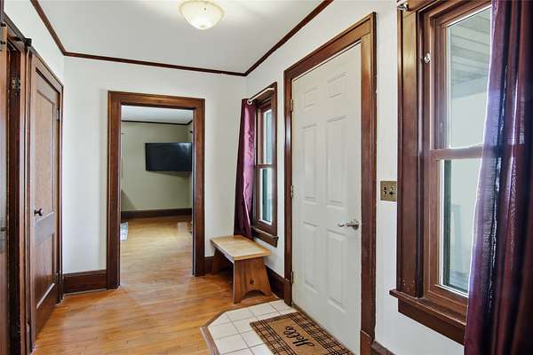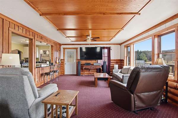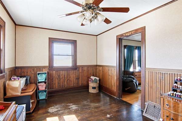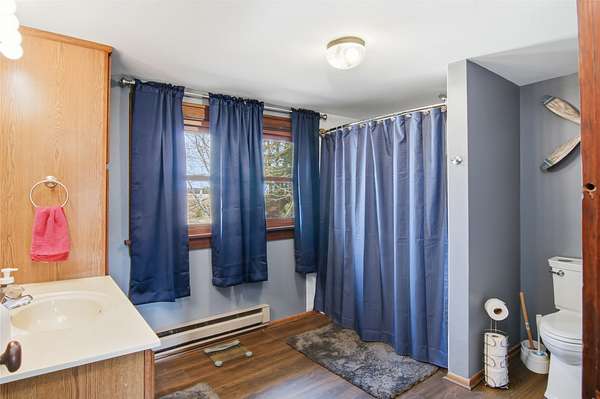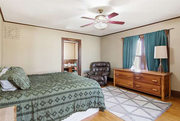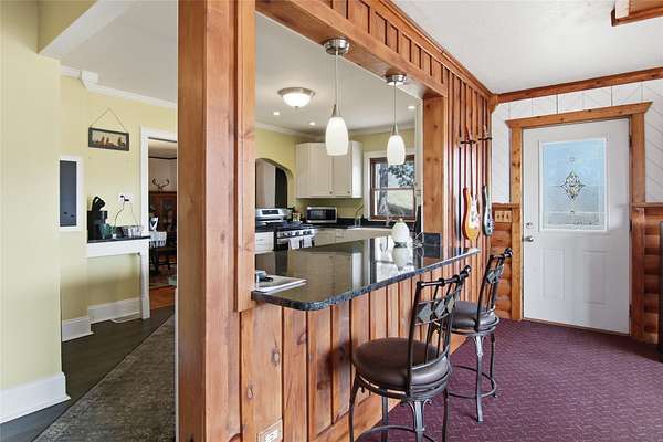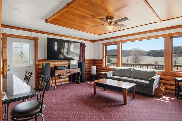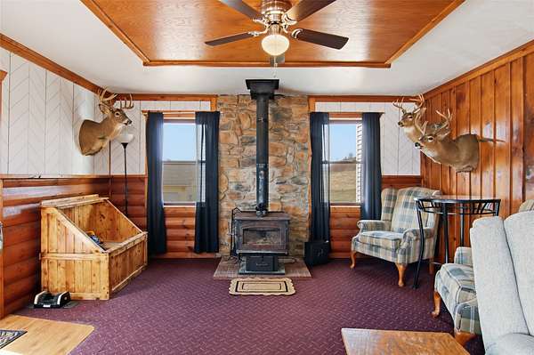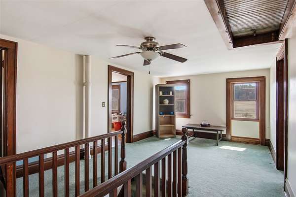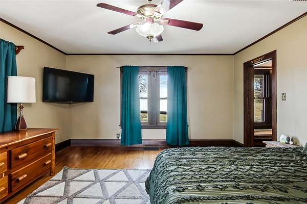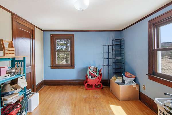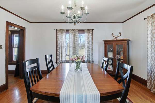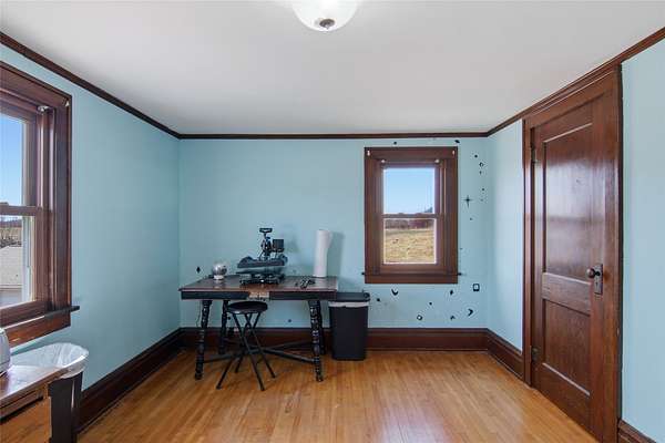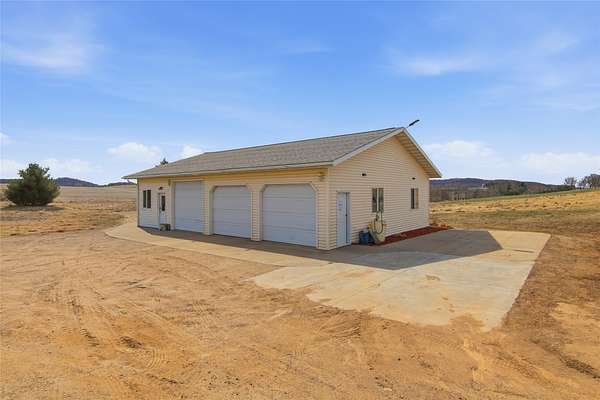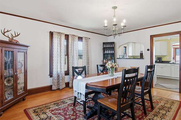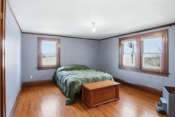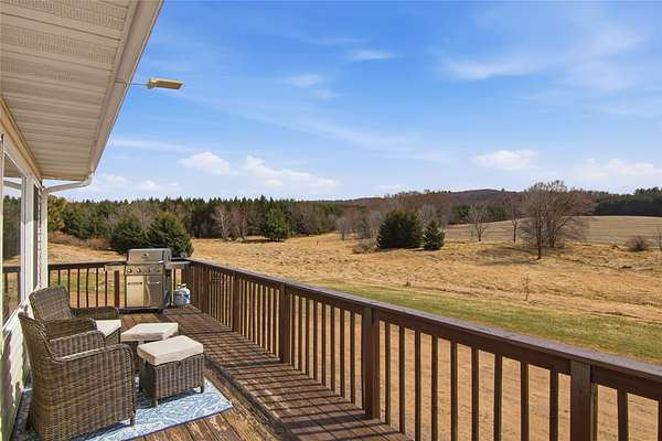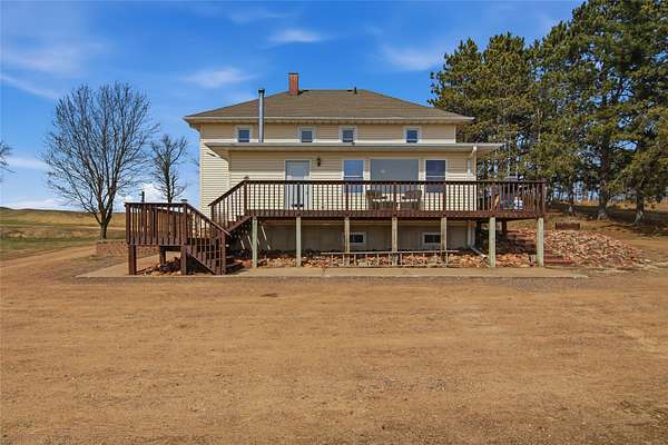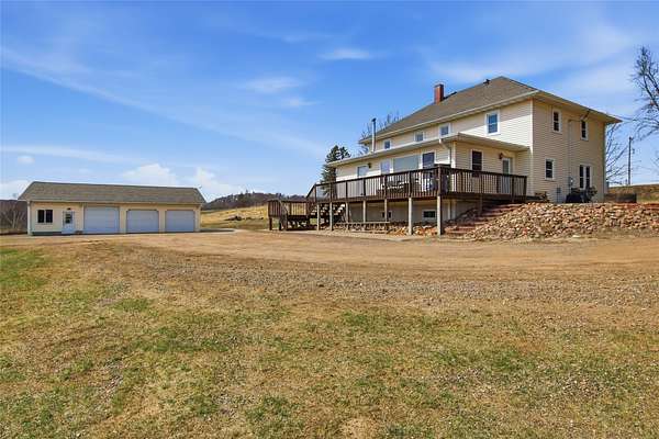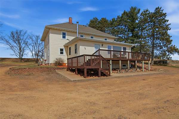 Charming two-story farmhouse on 4.7 acres just a few minutes from Hwy 64, and Hwy 53 blends modern convenience with country living. Four upstairs bedrooms (full bath), main-floor bedroom, main floor 1/2 bath, & laundry, generous walk-in closets, rich wood floors, and an updated kitchen with Schrock maple soft-close cabinets, farmhouse sink, granite counters, and gas range. Spacious living room with a cozy wood-burning stove and direct deck access adjacent to the kitchen, perfect for entertaining. Enjoy mornings on the quaint front porch, afternoons on the large deck or paver patio, and fresh fruit from apple trees, blackberries, raspberries, plus wild asparagus. Wildlife abounds: pheasants, ducks, deer hunting, and a spring-fed creek. Upgrades include but not limited to: septic (2012), insulation, electric, windows, siding, roof (2018), A/C (2021), and exterior LED motion lighting. Garden-ready soil area, and a huge 36x48 heated shop with (2) 8' and (1) 9' overhead doors, three 220V circuits, air-compressor line, curtain system, car lift and extra concrete parking for 2-3 cars. RARE FIND! Schedule your private showing today and claim your very own country retreat!