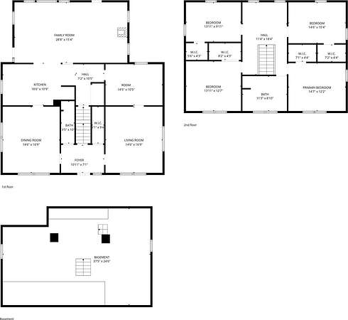 - Basement, Bathroom x 2, Bedroom x 5, Dining Room, Laundry Room x 2