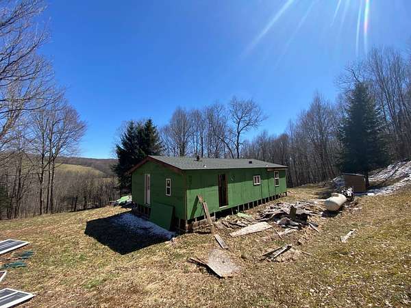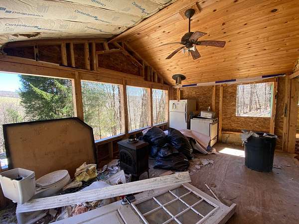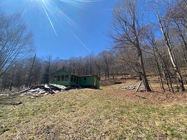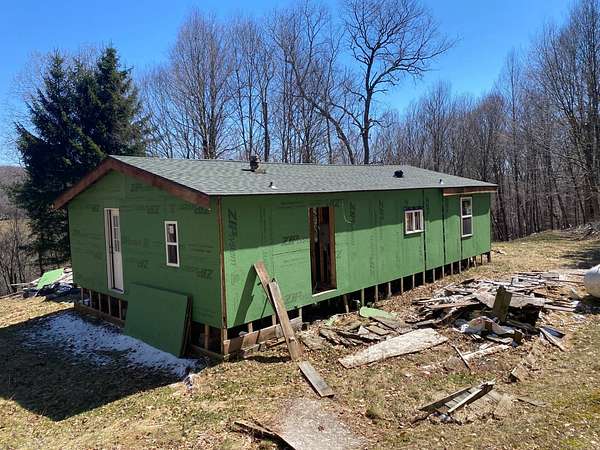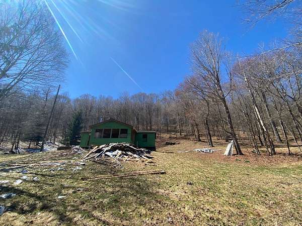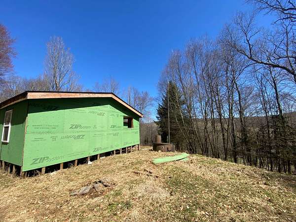 The price is not a misprint. This is nine acres of gorgeous Catskills hillside on two lots just above Hamden with views and systems in place - a rough driveway, electric, septic, and well, even propane run to the building for heat. But what's also there is a stripped out shell of a modular home with an addition, and a lot of abandoned building materials. This was going to be a dream property, with huge windows looking over the view, tucked against the hillside and anchored by gorgeous glacial rock. But the dream wasn't realized, and the project was abandoned. The bones are there, if you see the vision. Or you can demolish what's there and build your own dream. The value is there, whether you want to hunt, vacation, or move to the country full time. This is a property worth dreaming about, and worth the work.