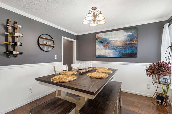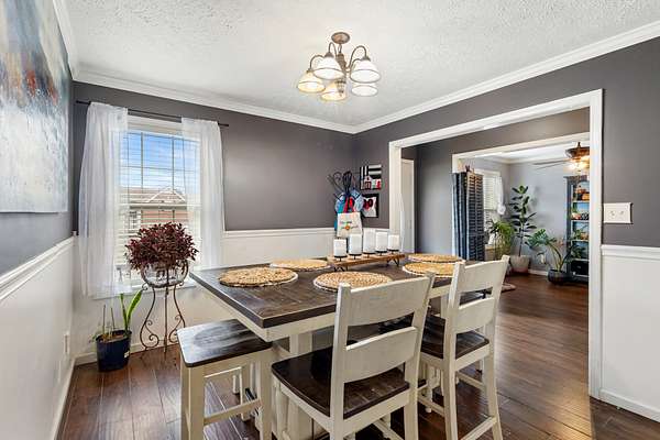 Welcome home to this well-designed 4-bedroom, 2.5-bath property in an established neighborhood with convenient interstate access. The main level offers multiple living and flex spaces including a dedicated office, formal dining room, living room with fireplace, and a separate den/TV room. The kitchen features updated appliances and flows easily into the main living areas, while a half bath and laundry room with extra storage complete the main floor.