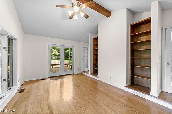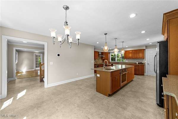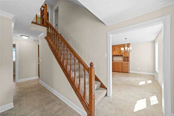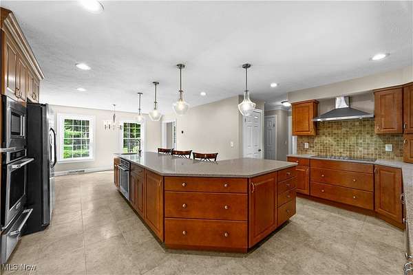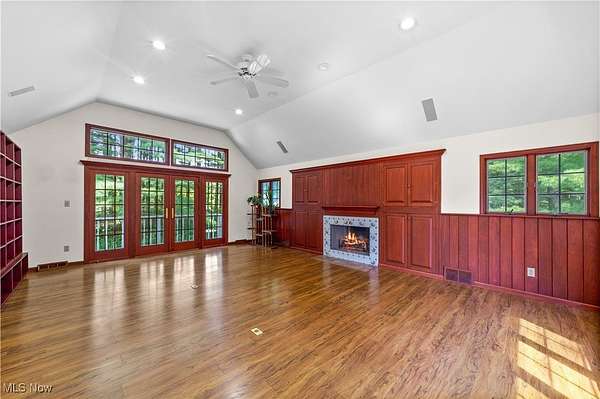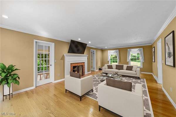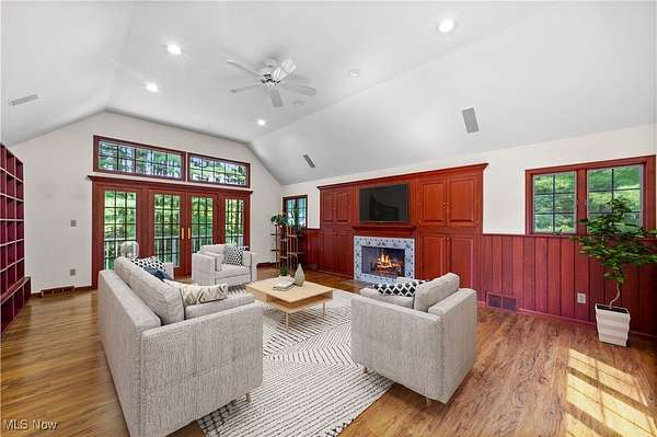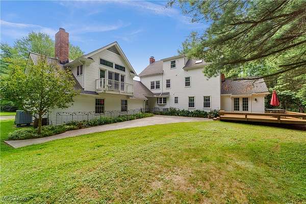 Nestled in the privacy of beautiful Moreland Hills, this five-bedroom, 4.5-bath Center Hall Colonial offers both elegance and comfort. Step inside and to your left, you'll find a welcoming living room with a fireplace, flanked by French doors. These doors open into a sun-filled room lined with windows and built-in bookshelves-perfect for a home office or library. On the opposite side of the main level is the chef's kitchen, complete with a large island for dining and entertaining, maple cabinetry, and quartz countertops. The adjoining hearth room, with its cozy fireplace, invites you to extend meals into relaxed evenings. Upstairs, the master suite offers a private ensuite bath, accompanied by two additional bedrooms and a full bath. A secluded family room sits above the garage, featuring French doors that open to a balcony overlooking the expansive deck and paver patio. The third floor provides two more bedrooms and another full bath, while the partially finished lower level adds even more living space plus a full bath. Outside, nearly two acres of yard await--perfect for gatherings with family and friends. The three-car garage is spacious and future-ready, wired for electric vehicle charging. All of this within the award-winning Orange School District and just minutes from shopping and daily conveniences. This home is truly for the discerning buyer seeking comfort, privacy and classic style in a great area. Schedule your private showing today.