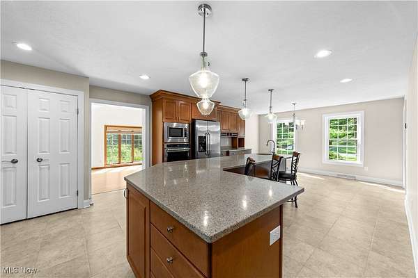 - Bookcases, Built In Features, Ceiling Fans, Chandelier, Eat In Kitchen, Entrance Foyer, Granite Counters, Kitchen Island, Natural Woodwork, Pantry, Recessed Lighting, Smart Thermostat, Vaulted Ceilings, Walk In Closets