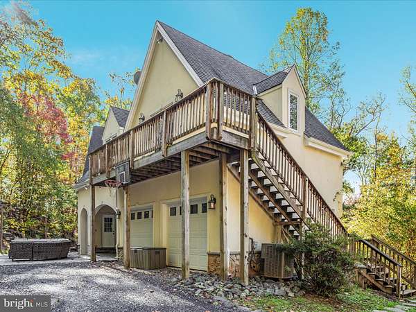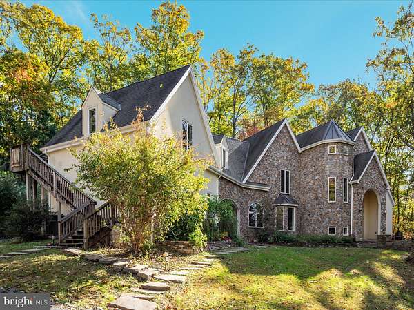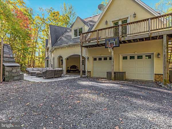 UNICORN ALERT! Freedom! No HOA! Custom French Colonial "castle" with exquisite architecture, stone masonry, and a Turn-Key Apartment over the garage with private exterior entry! Brand new roof! Serene setting nestled in the foothills of the Bull Run Mountains surrounded by olde growth hardwoods and aboundant wildlife. This sophisticated estate offers a singular opportunity to claim a luxury retreat on nearly five private acres in The Plains, an exclusive area of Fauquier County. This is not merely a home; it is an experience designed for grand living, dedicated work, and quiet repose. Dramatically designed floorplan boasts cathedral ceilings and soothing natural light throughout. The enormous gourmet kitchen is a true workspace, built for function with custom elements, including a built-in 6-burner Wolf stove and high-end commercial grade stainless steel appliances. The huge kitchen island is equipped with a functional salad sink, making it a true chef's dream. An immense Walk-In Pantry provides endless storage and easy access. The incredible two-story Great Room takes center stage, boasting soaring ceilings, an upstairs overlook, and a dramatic, floor-to-ceiling stone fireplace perfect for memorable entertaining. Finally, retreat to the luxurious main-level Primary Suite, which provides a peaceful escape complete with a sitting area, a second, inviting wood-burning fireplace, and a generous walk-in closet. The primary bath is expansive, featuring a soaking tub and double sinks. Ascend the staircase to the thoughtful upper level. To the right sits a massive private bedroom with a full bathroom next door. To the left, a layout built for flexibility; two additional bedrooms, a flexible bonus/flex room, and the crowning jewel: a fully finished Au Pair Suite with its own private exterior entrance, sitting conveniently above the garage. This home features ample parking including a two-car side-load garage connected to the home via a massive and breathtaking breezeway to the convenient side entrance, ushering you into a functional mudroom and main-level laundry space. The private apartment offers unparalleled potential for guests or family. Adding significant living space, the walk-out lower level was finished in 2025 to the highest standards. It features a sprawling, open recreation room (currently set up for media use) with striking built-ins, a wine fridge, and endless open space for fitness or play. This level includes a large private entrance bedroom with a true walk-out and direct access to a rough-in bathroom. An additional unfinished storage area ensures you have utility and storage space for all your needs. The exterior is defined by incredible hardscaping throughout the entire backyard and front yard. From the main house, step out onto the expansive patio, centered around an immense built-in fire pit and beautiful stone retaining walls. The acreage offers true country living possibilities with a huge, flat side yard, a chicken coop, and an adjoining running shed-perfect for your horses, pets, or passion for hobby farming. Stunning private views surround this meticulous estate.