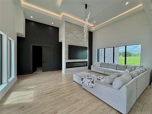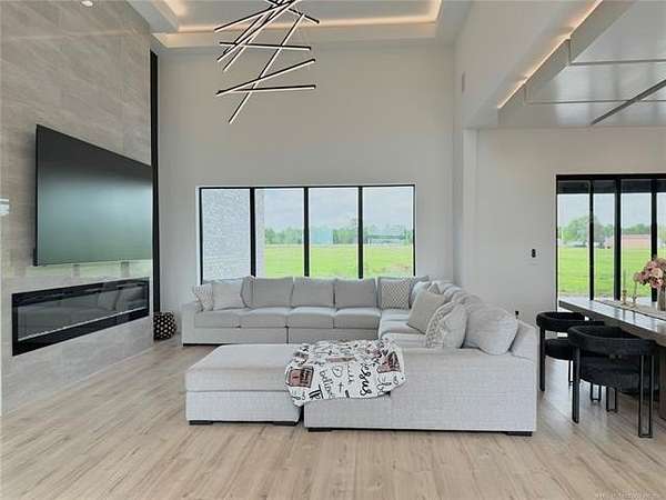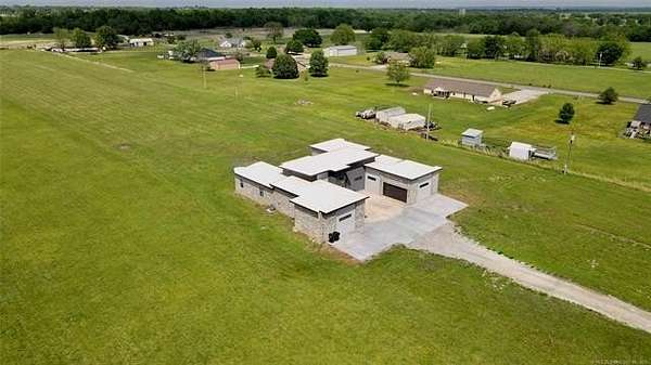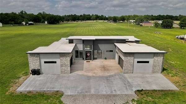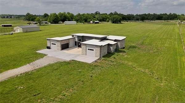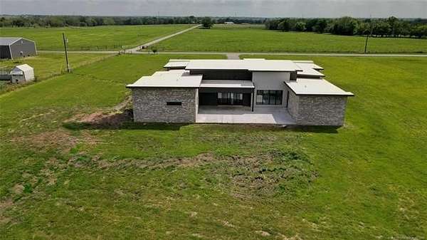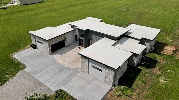 Modern Luxury + County Living = Unique Property check out this Beautiful 2026 newer construction modern style home sitting on 5 acres of Land just 6 miles from Oologah Lake. featuring luxury vinyl plank floor throughout, tile floors in all bathrooms, Master bedroom bathroom has a tub and walking shower with his and hers ceiling showers heads and sinks, 2 closets one closet with built in vanity, 4 other good size bedrooms all with walking closets, relax watching a movie with the whole crew in the movie theater room or can be a 6th bedroom if want, take care of business at the office room, living room has 17'ft tall ceilings bringing a modern contemporary looking, tall window bringing lots of natural light plenty of space for all vehicles this awesome property has 4 car garage ,driveway holds up to 6 cars. come see it in person before is gone! 12 Minute drive to Owasso and 25 min to Tulsa downtown