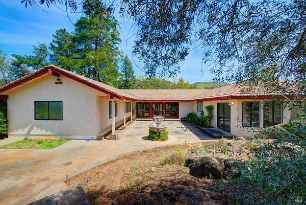 Est $8,237/moSituated on 10 acres with captivating vistas, this property offers a 3 bedroom/3 bath single level Mediterranean inspired home with over 2,500 sq. ft. of living space waiting for your remodeling creativity. Scenic views and vineyard potential as the Seller has filed for a permit to have approximately 2.7 acres approved for vineyard. Truly a private setting, native rock outcroppings, expansive lawn areas and pasture area truly enhance all that this property can offer. The detached three car garage plus extra level parking areas are ideal for R/V or extra vehicles. Tons of potential to create the true Napa Valley Estate!
