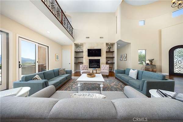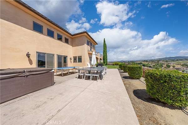 Experience luxury and privacy in Temecula's wine country! This custom-built 2012 estate features 5 bedrooms, 4 baths and approx. 5,088 sq.ft. of elegant living space on a 5.5-acre private lot. A gated driveway leads to panoramic vineyard and hill views. The bright open floor plan includes soaring ceilings, a chef's kitchen, formal dining, and multiple living areas. The primary suite offers a spa-inspired bath, walk-in closets, and a private balcony. Expansive patios, landscaped grounds, and ample usable land provide endless possibilities -- plant a vineyard, keep horses, or build a guest house/ADU. Perfect for personal living or long-term investment. Conveniently close to award-winning wineries, dining, shopping, and freeway access while enjoying complete privacy.