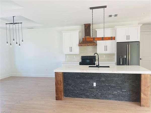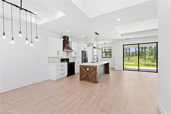 NEW PRICE REDUCTION FOR A QUICK SALE!!! NEW CONSTRUCTION 3+ DEN, 2 BATHS HOME ON 1.59 ACRES 100% UPLAND LOT. Beautiful farm style home with open floor plan and outdoor kitchen gives you the opportunity to enjoy with your guests and entertain in and out. Impact windows and upgraded trims, tile and wood work will catch your eye as soon as you walk in to this brand new home. Built in electric fire place adds a beautiful look to the living room. RO system and tankless water heater installed for the whole house. Plenty of space for pool or guest home. Big Corkscrew Island Regional Park is within a short drive for you to be entertained by. Park has aquatic complex, tennis and pickleball courts, athletic fields, fitness center, walking paths and much more. Beach is just a short 35 minute drive for you to enjoy. WASHER AND DRYER ARE NOT INCLUDED.