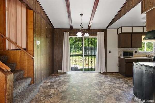 Welcome to this charming home located in the desirable Kearsley School district! Set on a generous 2.2-acre fenced lot, the property offers privacy and space to roam, with two backyard sheds, a double-gated chain link fence, and a cement front porch. Featuring 4 spacious bedrooms and 1 full bathroom, this home offers an inviting open-concept layout on the main floor, seamlessly blending the living room, dining area, and kitchen—perfect for both everyday living and entertaining. Inside, you'll find hardwood floors throughout most of the home, with linoleum in the kitchen and carpet in the finished lower level. Architectural details like ceiling beams in the kitchen and living room, along with solid wood trim, add warmth and character. A newer furnace (just 1 year old), a Generac generator, and convenient cellar doors off the back of the house provide peace of mind and practicality. The attached 1-car garage includes a rear access door to the backyard. Ideally located near I-475, I-69, shopping, Mott Lake, Crossroads Village, and nature preserves—this home is ready for your personal touch! Home has been Reduced for any repairs needed Agent owned.