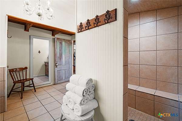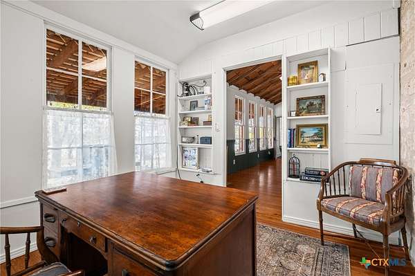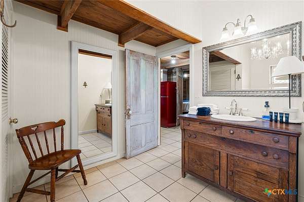 - Beamed Ceilings, Ceiling Fans, Dining Area, Furnished, Granite Counters, Home Office, Main Level Primary, Multiple Dining Areas, Natural Woodwork, Primary Downstairs, Separate Formal Dining Room, Separate Shower, Shower Only, Vanity